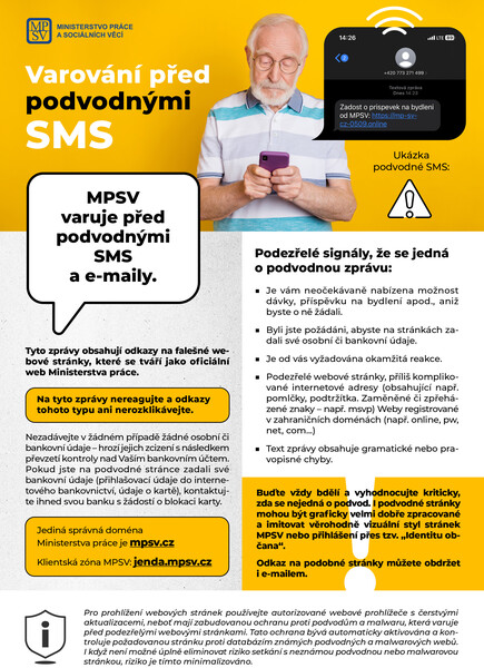 Ministerstvo práce a sociálních věcí a další státní instituce se už delší dobu potýkají s tzv. phishingovými útoky. Lidem chodí podvodné SMS a emaily, které se tváří jako informace od státu, především o problematice dívek a státní pomoci. Tyto zprávy pak odkazují na falešné webové stránky.