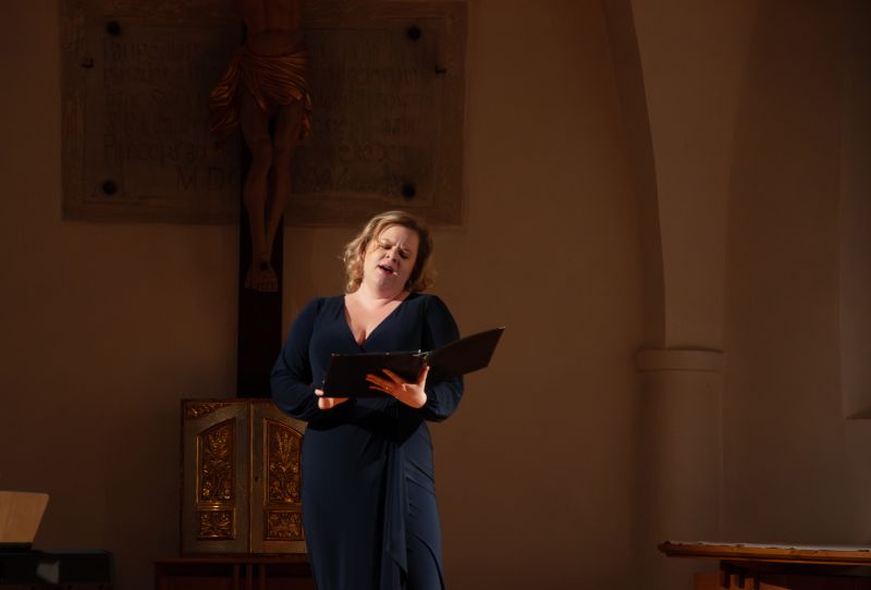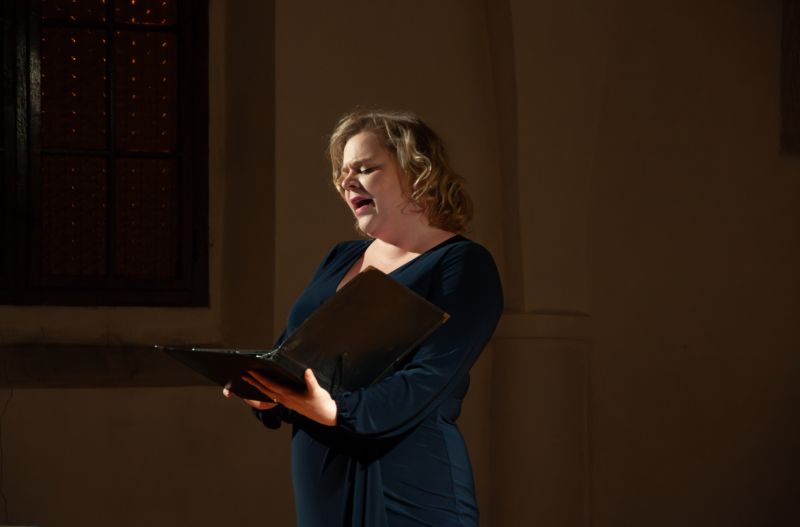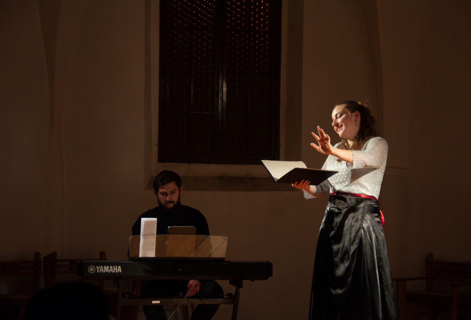 V sedm hodin se ve špitálním kostele svatého Kříže konal koncert. Ten zahájila třemi renesančními písněmi altistka Monika Jägerová v doprovodu mladého klavíristy Vojtěcha Červenky. Červenka doprovázel i druhou zpěvačku večera – sopranistku Tamaru Morozovou.