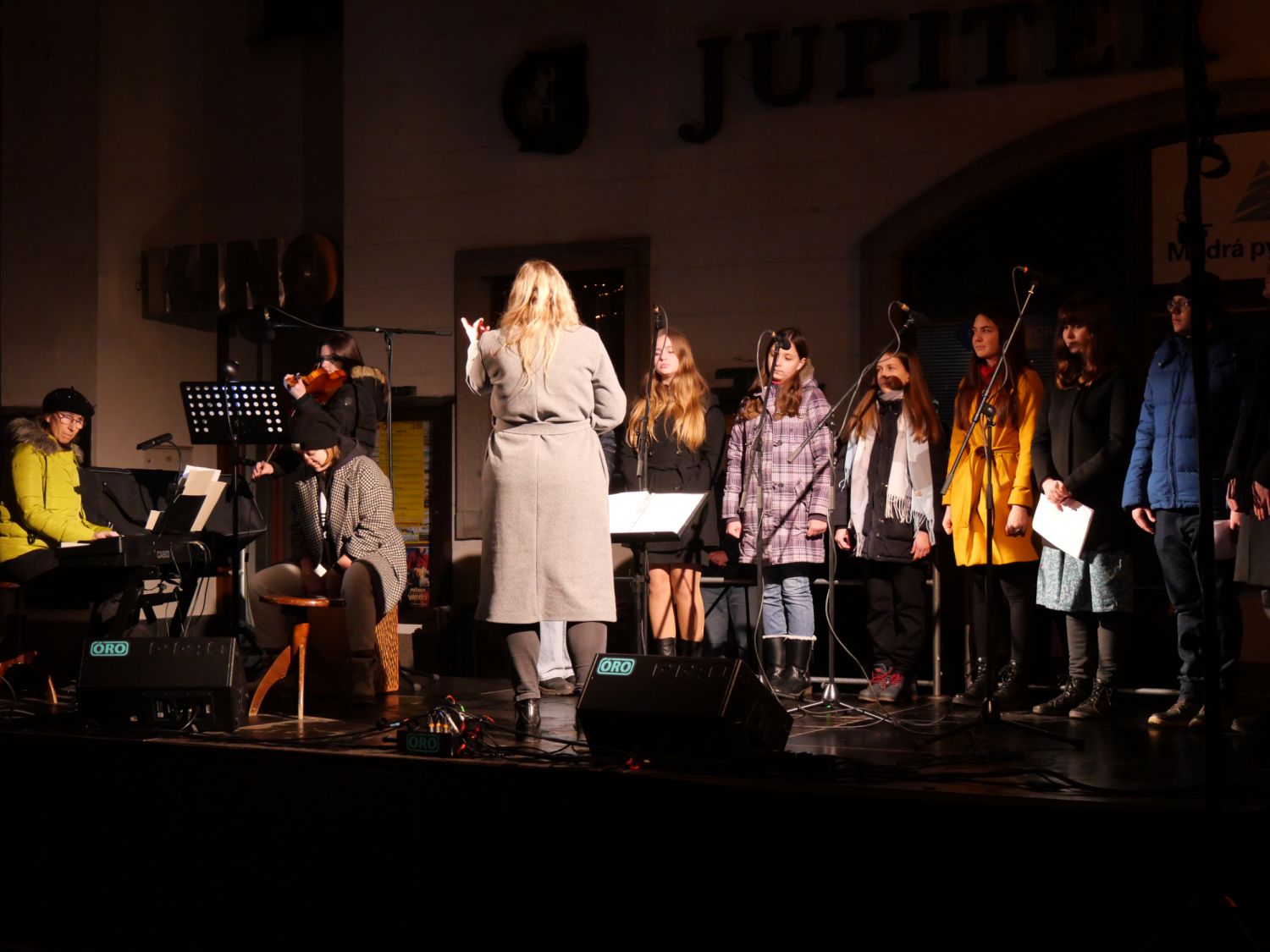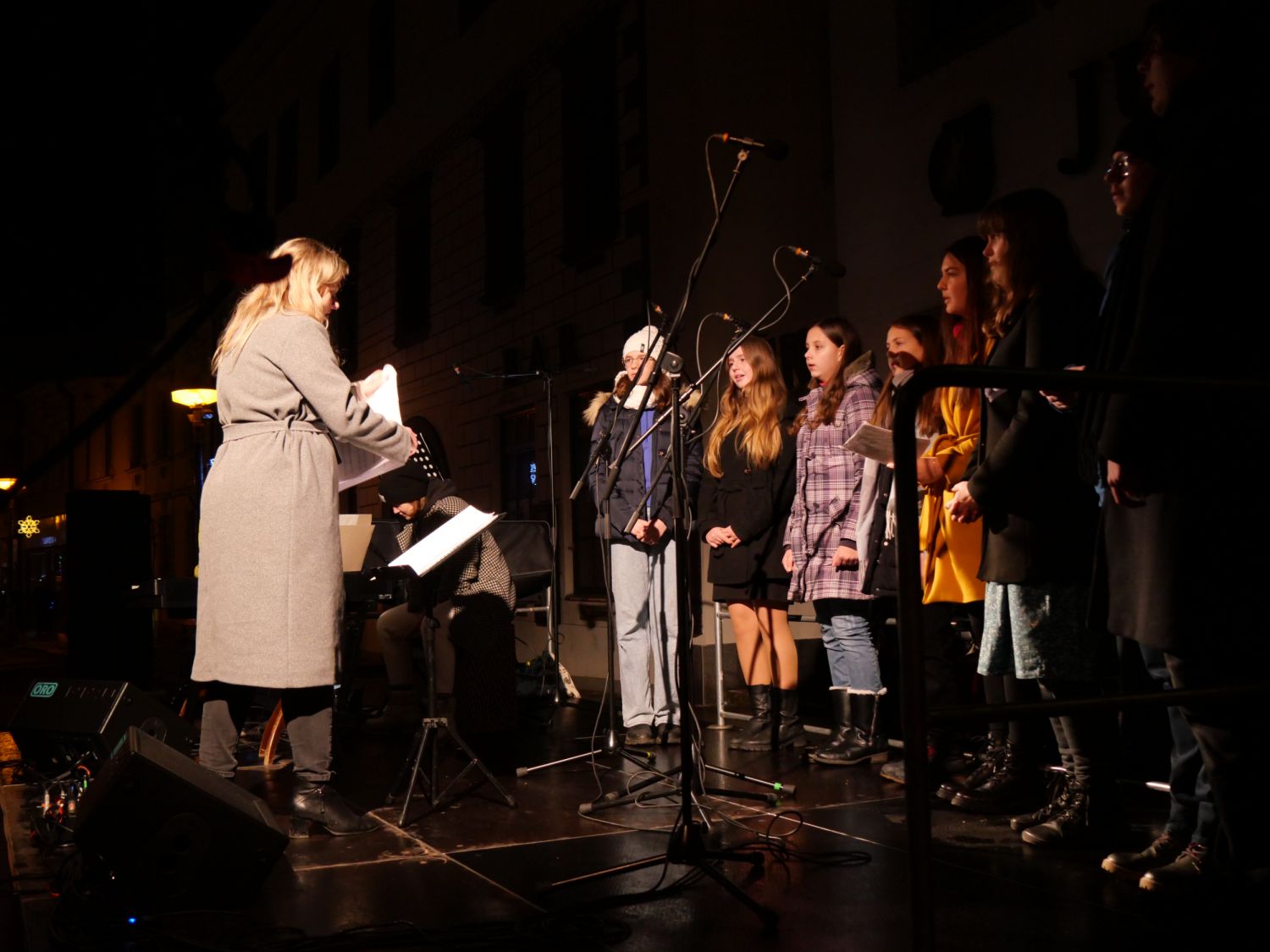 Hudebním vystoupením ke sváteční novoroční náladě přispěl pěvecký sbor gymnázia. A závěrečný, téměř čtvrthodinový ohňostroj podbarvený hudbou přihlížející nadchnul. Ve stáncích se podával teplý punč, svařák, lidé se bavili a užívali si první den v roce 2024 pospolu.