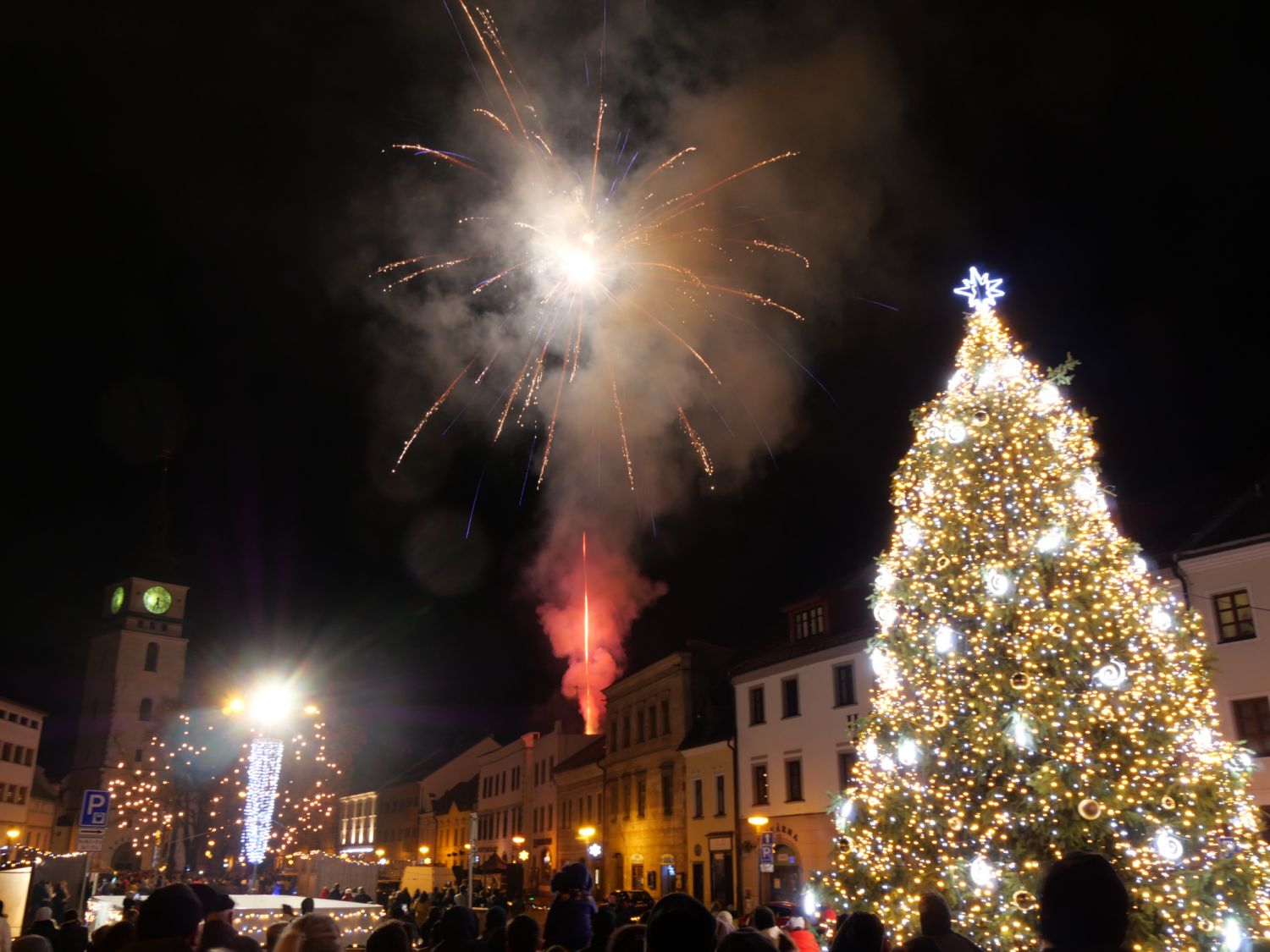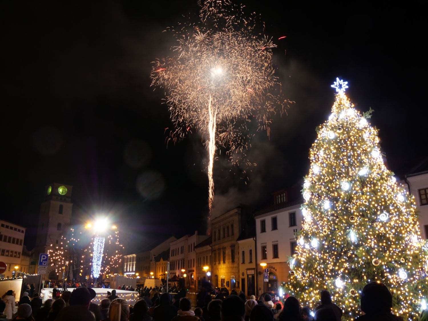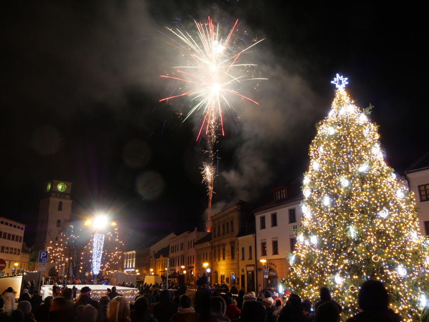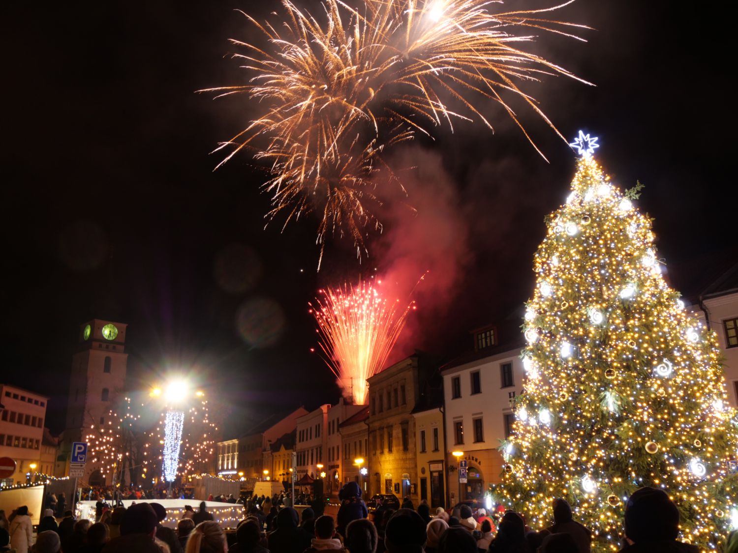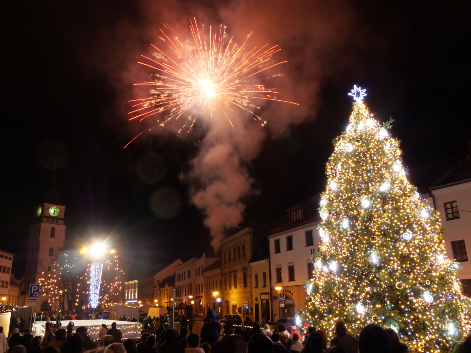 Stovky lidí na velkomeziříčském náměstí vítaly nový rok v podvečer prvního ledna. Zněla hudba, slova představitelů města a nechyběl ohňostroj, který přítomní odměnili potleskem.