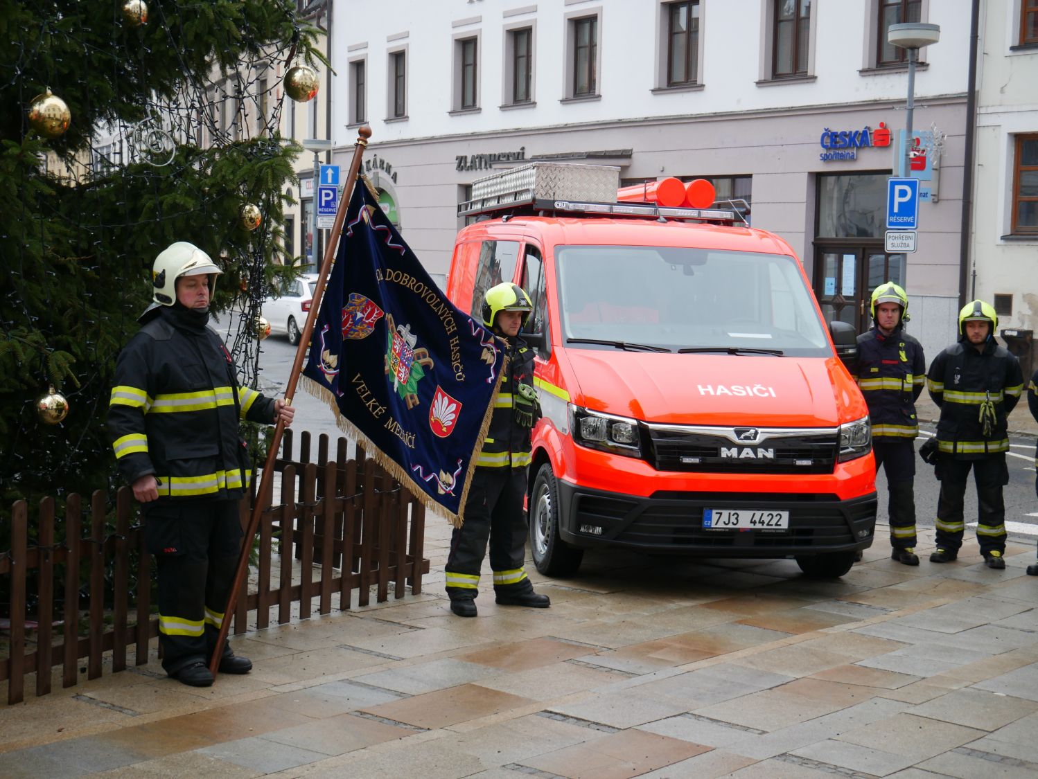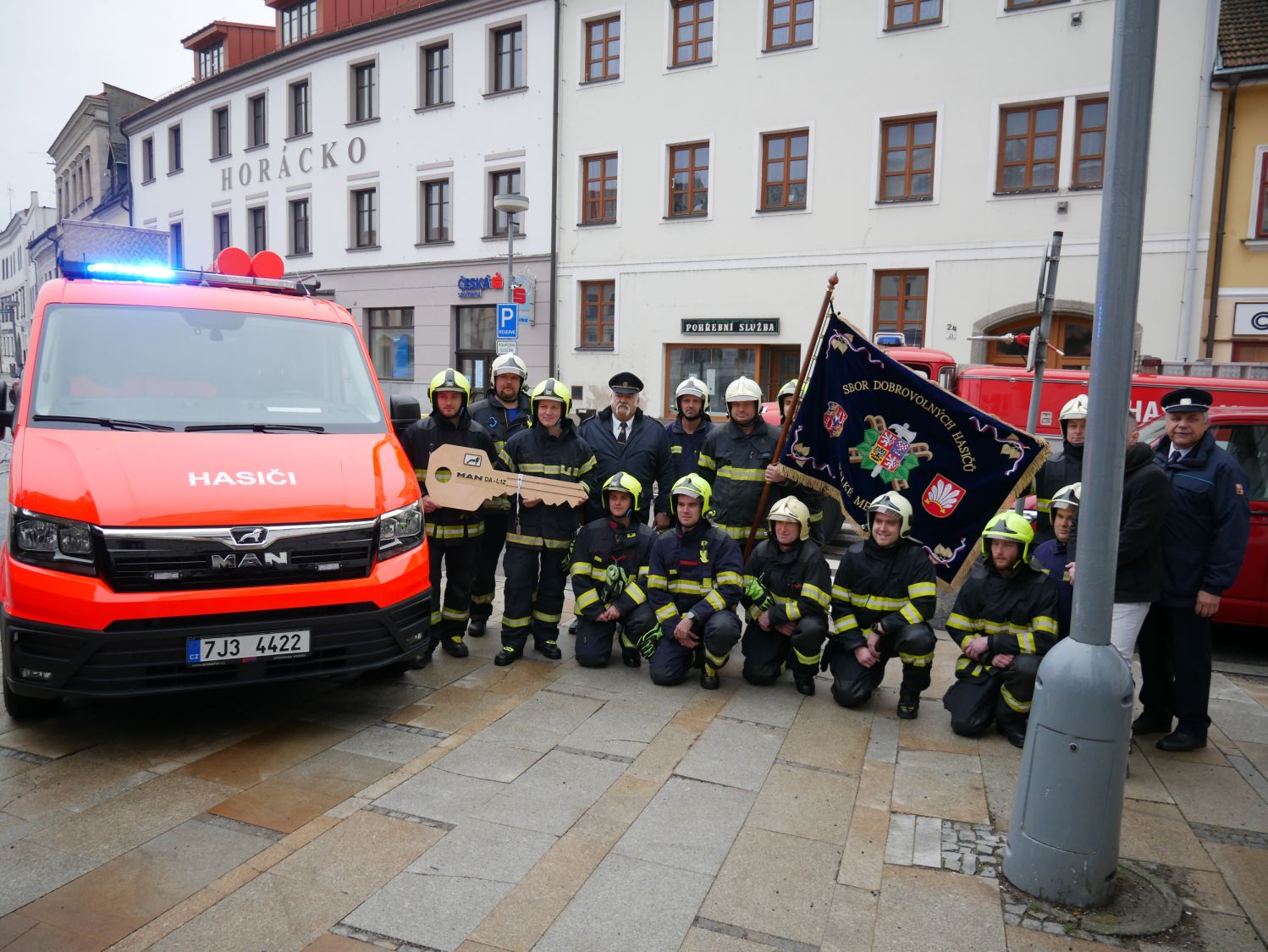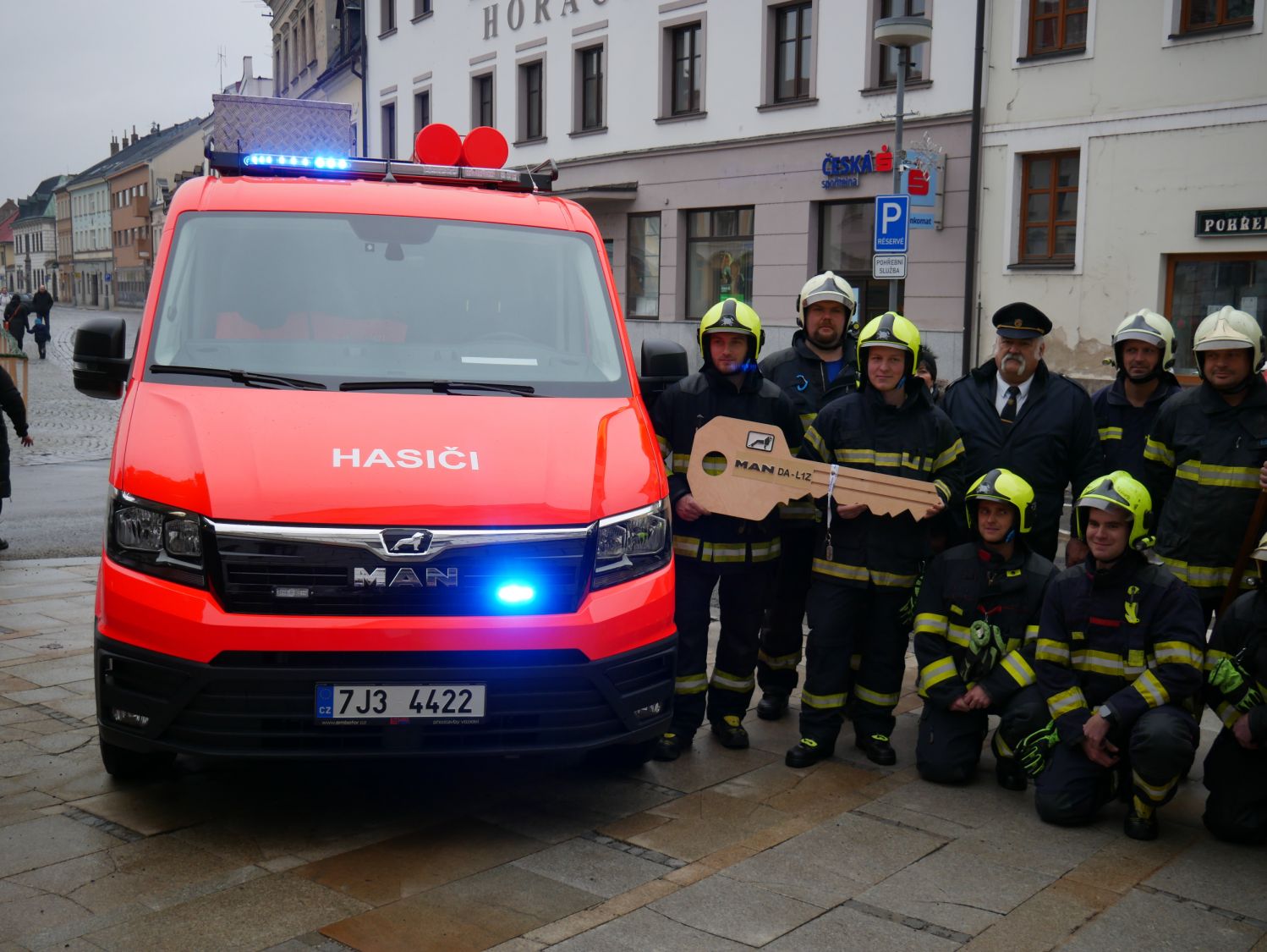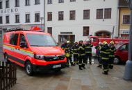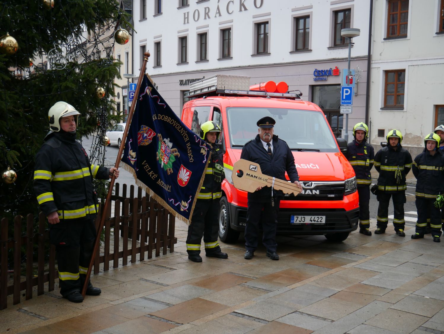 Malá slavnost proběhla před velkomeziříčskou radnicí. Starosta města Alexandros Kaminaras připomněl nenahraditelnou funkci dobrovolných hasičů ve městě a popřál novému vozu i hasičům, kteří s ním budou jezdit, mnoho šťastných kilometrů a šťastné návraty z výjezdů. Šťastné kilometry a návraty popřáli novému vozu a hasičům i starosta Okresního sdružení Hasičů Čech, Moravy a Slezska Luboš Zeman či velitel stanice HZS ve Velkém Meziříčí Jiří Doležal.