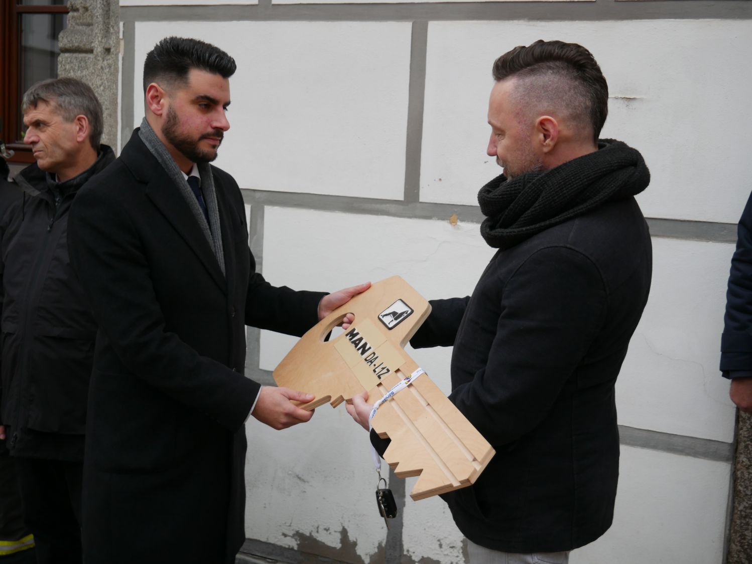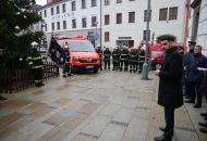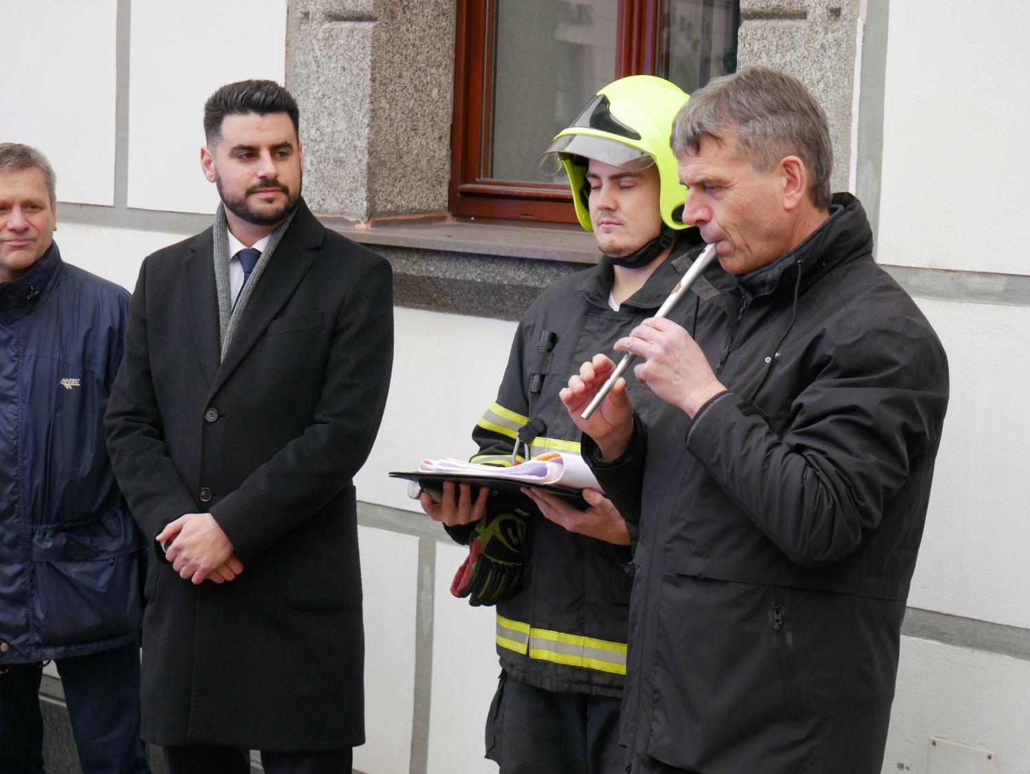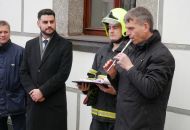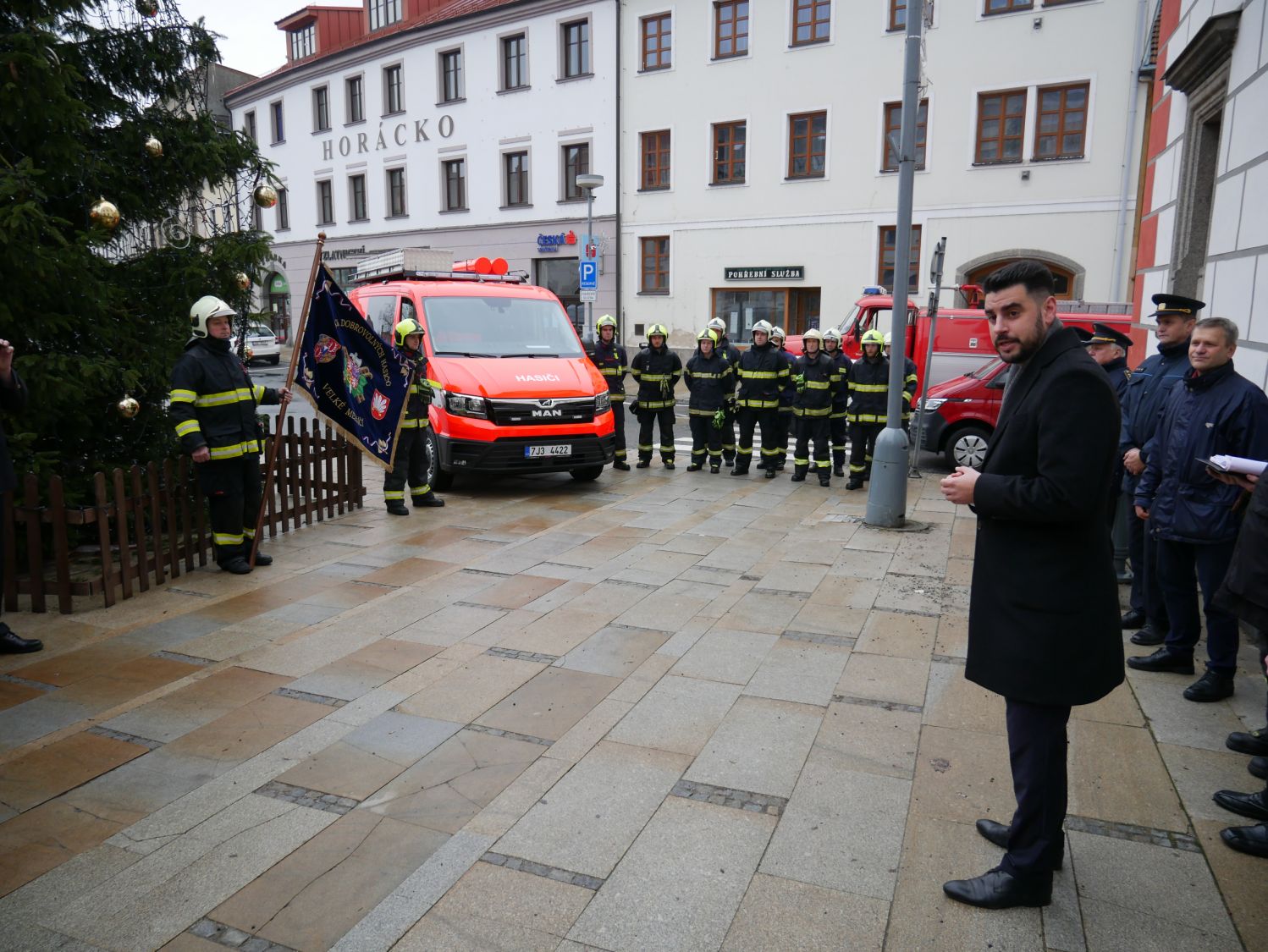 Malá slavnost proběhla před velkomeziříčskou radnicí. Starosta města Alexandros Kaminaras připomněl nenahraditelnou funkci dobrovolných hasičů ve městě a popřál novému vozu i hasičům, kteří s ním budou jezdit, mnoho šťastných kilometrů a šťastné návraty z výjezdů. Šťastné kilometry a návraty popřáli novému vozu a hasičům i starosta Okresního sdružení Hasičů Čech, Moravy a Slezska Luboš Zeman či velitel stanice HZS ve Velkém Meziříčí Jiří Doležal.