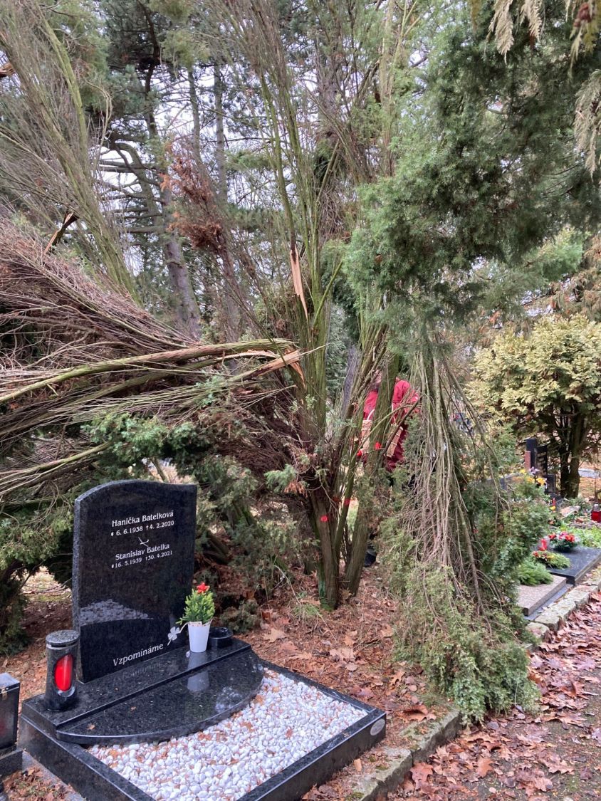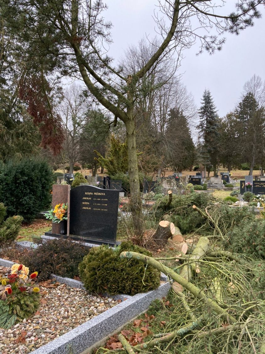 Těžký sníh se hodně podepsal i na hřbitově na Karlově, kde za své vzala velká část vzrostlých zeravů a také borovice nezůstaly ušetřeny. V ulici Nad Gymnáziem se rozlámala část javorů a také na Kunšovci se muselo hodně prořezávat. „Technické služby řešily kalamitní stav přednostně a jako prioritu si vzaly bezpečnost na hřbitově," doplnila Tereza Axmanová a dodala: „Musím také vyzdvihnout práci Michaely Chmelíčkové z odboru životního prostředí, která ve velmi krátké době domluvila firmu, jež zvláště na vzrostlých stromech provedla bezpečnostní ořez." Tereza Axmanová také ocenila přístup obyvatelů města, kteří se sami pustili do odstraňování následků kalamity.