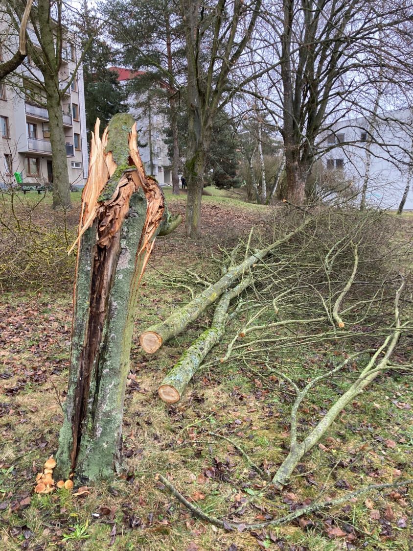 Sníh poškodil i vzrostlé stromy, které se vyvrátily nebo se jim zlomily hlavní větve. To je třeba příklad zeleného vnitrobloku na Čechově ulici, kde popadaly střemchy. Naopak Čechovy a Riegrovy sady byly zasaženy méně, než se čekalo.