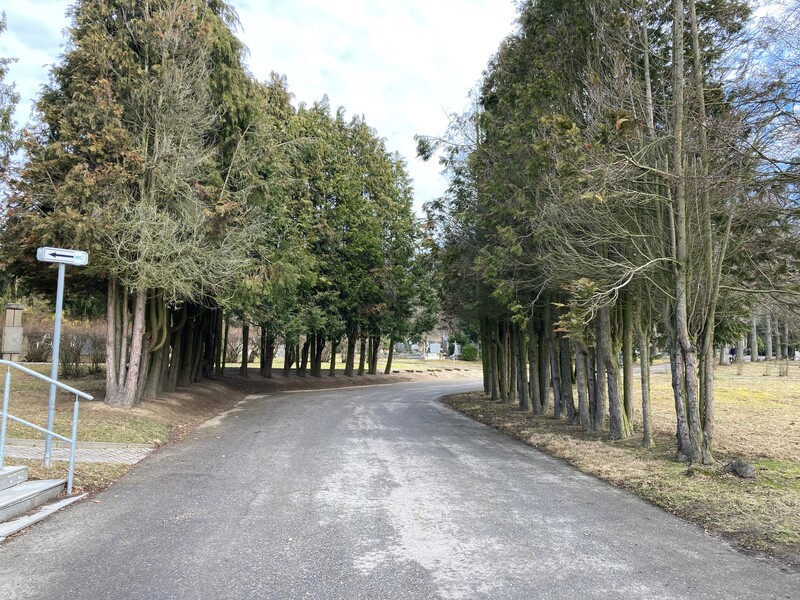 Nová alej se posune doleva (při pohledu od brány) a bude lemovat příjezdovou cestu k obřadní síni. Vysázeny zde budou třešně pilové, které toto místo především barevně obzvláštní. „Tmavou alej nahradí alej světlá," doplnila architektka Tereza Axmanová. Přibude i kamenná zídka se zabudovanými lavičkami, která nejenže zpevní svah, ale bude sama o sobě zajímavým architektonickým prvkem.