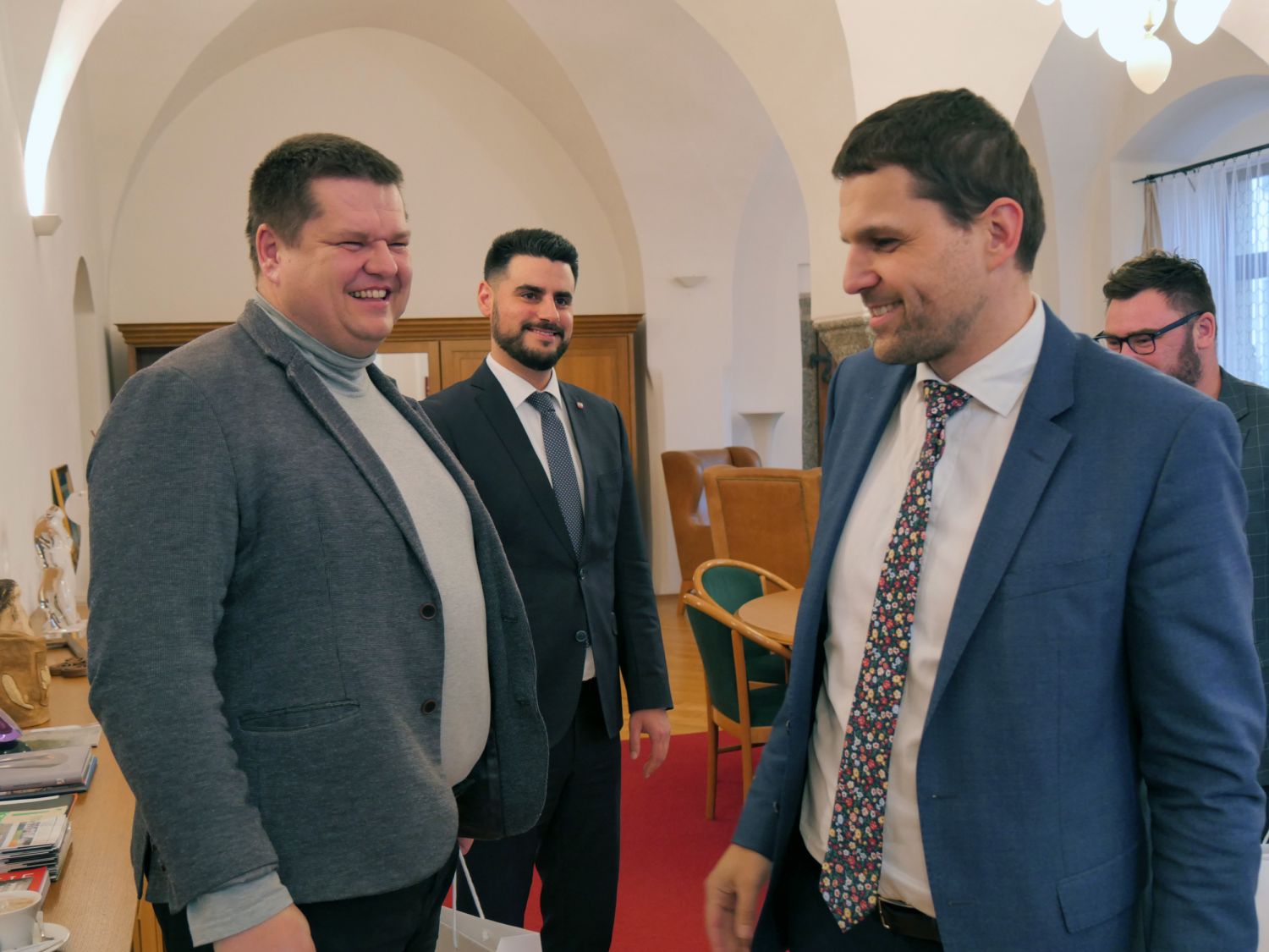 Ministra životního prostředí Petra Hladíka dnes odpoledne na radnici přivítal starosta Alexandros Kaminaras s místostarostou Martinem Kamanem, radními Andreou Vašíčkovou, Josefem Prokopem a starostou Oslavice Pavlem Janouškem.