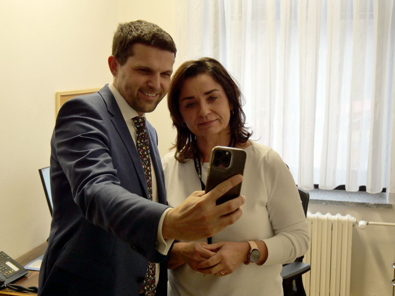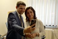 Poté se ministr s radními rozloučil a za doprovodu starosty se přesunul do nové budovy městského úřadu na odbor životního prostředí. „Musím pozdravit ještě vaši zaměstnankyni, paní Žákovou,“ vysvětlil Petr Hladík. Marcela Žáková ho totiž k návštěvě Velkého Meziříčí v podstatě vybídla. „Petra Hladíka znám z Osové Bítýšky a sleduji ho na facebooku. K jednomu jeho příspěvku, že se chystá do Telče, jsem mu napsala komentář, proč nepřijede i do Velkého Meziříčí,“ popsala Žáková a dodala: „No, a pan ministr mě vzal za slovo.“ Závěrem návštěvy Velkého Meziříčí tak Petr Hladík ještě stihl s pracovnicí městského úřadu probrat i problematiku zemědělských pozemků.