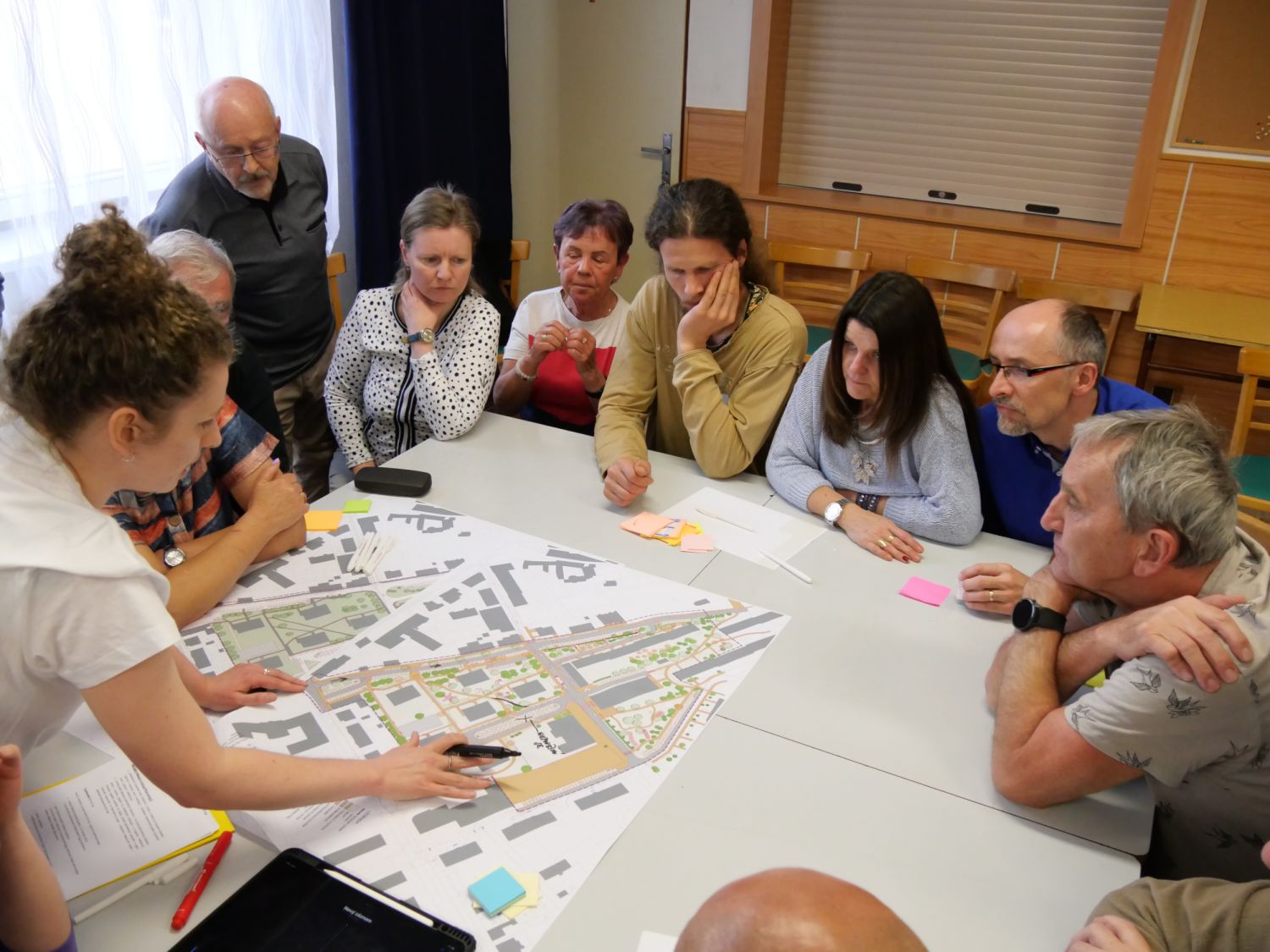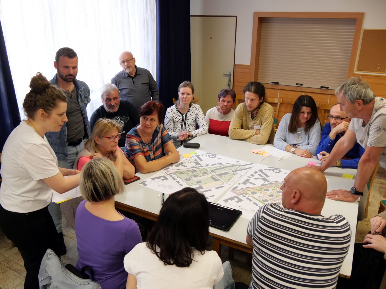 Architekti ze studia City Upgrade poté představili navrhované úpravy území, které se vyvíjelo v 60.–80. letech z původní zástavby nízkými domky postupně do dnešní panelové zástavby a jež nabízí více než 250 bytů. „Pozitivně hodnotíme dobrou občanskou vybavenost lokality,“ řekla úvodem prezentace architektka Kristýna Šabatková a představila navrhované změny. Ty spočívají zejména v navýšení počtu parkovacích míst, kterých nyní v lokalitě zhruba osmdesát chybí, vytvoření nástupní plochy pro hasiče, cesty a přechodů pro děti ze škol, možném snížení počtu kontejnerů, novém rozmístění laviček, vybavení nevyužívaného prostoru nad praktickou školou altánem, skluzavkami a dalšími prvky pro děti. Poté účastníci setkání o návrzích diskutovali u kulatých stolů. „Vaše podněty zpracujeme a zhruba do prázdnin budeme mít hotovou finální verzi studie,“ uzavřela architektka Šabatková.