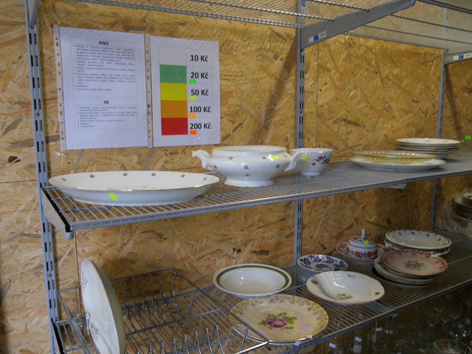Re-use centrum přijímá zařízení a vybavení domácnosti (např. keramické, porcelánové i skleněné nádobí, varné sklo, hrnce, plechy, na pečení, obrazy a rámy, vázy, dekorace, květináče, mechanické domácí spotřebiče, žehlicí prkna, sušáky, kýble, deštníky atd.), cédéčka, DVD, videokazety, vinylové desky, knihy, časopisy, hračky (vyjma textilních) a hry (deskové, pexesa, karty apod.), sportovní vybavení (sáňky, lyže, brusle, boby, činky, míče, švihadla, odstrkovadla, koloběžky (ne elektrické), jízdní kola, helmy, tenisové rakety, hokejky, chrániče apod., bižuterii, kabelky, kufry, batohy a další.