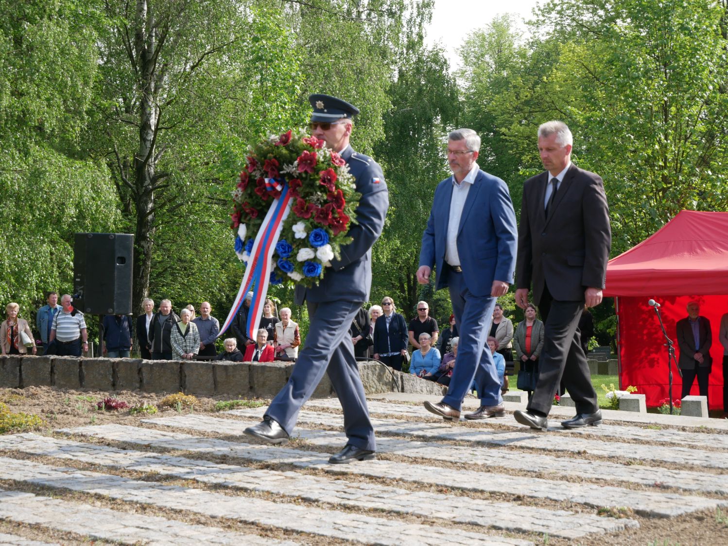 V krásném májovém podvečeru 10. května se občané Velkého Meziříčí sešli u památníku padlých na hřibitově na Karlově, aby si připomněli události konce druhé světové války v našem městě.