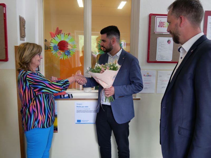 Přístavba třídy mateřské školy v Mostištích už má hotovou fasádu. Uvnitř probíhají dokončovací práce. V nové třídě na první pohled návštěvníka zaujme velké pobytové okno, které vnáší do prostoru spoustu denního světla a nabídne dětem zajímavé místo pro hry i odpočinek. Radní si prohlédli i základní školu, kterou je provedla ředitelka Jitka Hublová. Ta v ní učí již od roku 1978 a nyní po šestačtyřiceti letech končí. Starosta Alexandros Kaminaras spolu s radními jí při té příležitosti poděkovali a popřáli mnoho zdaru.