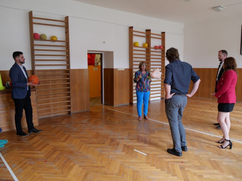 Návštěva základní školy na Komenského ulici se nesla v duchu prohlídky míst, která budou vyžadovat opravu. Aktuálně je třeba vyřešit problém zatékání střechou na schodiště u tělocvičny.