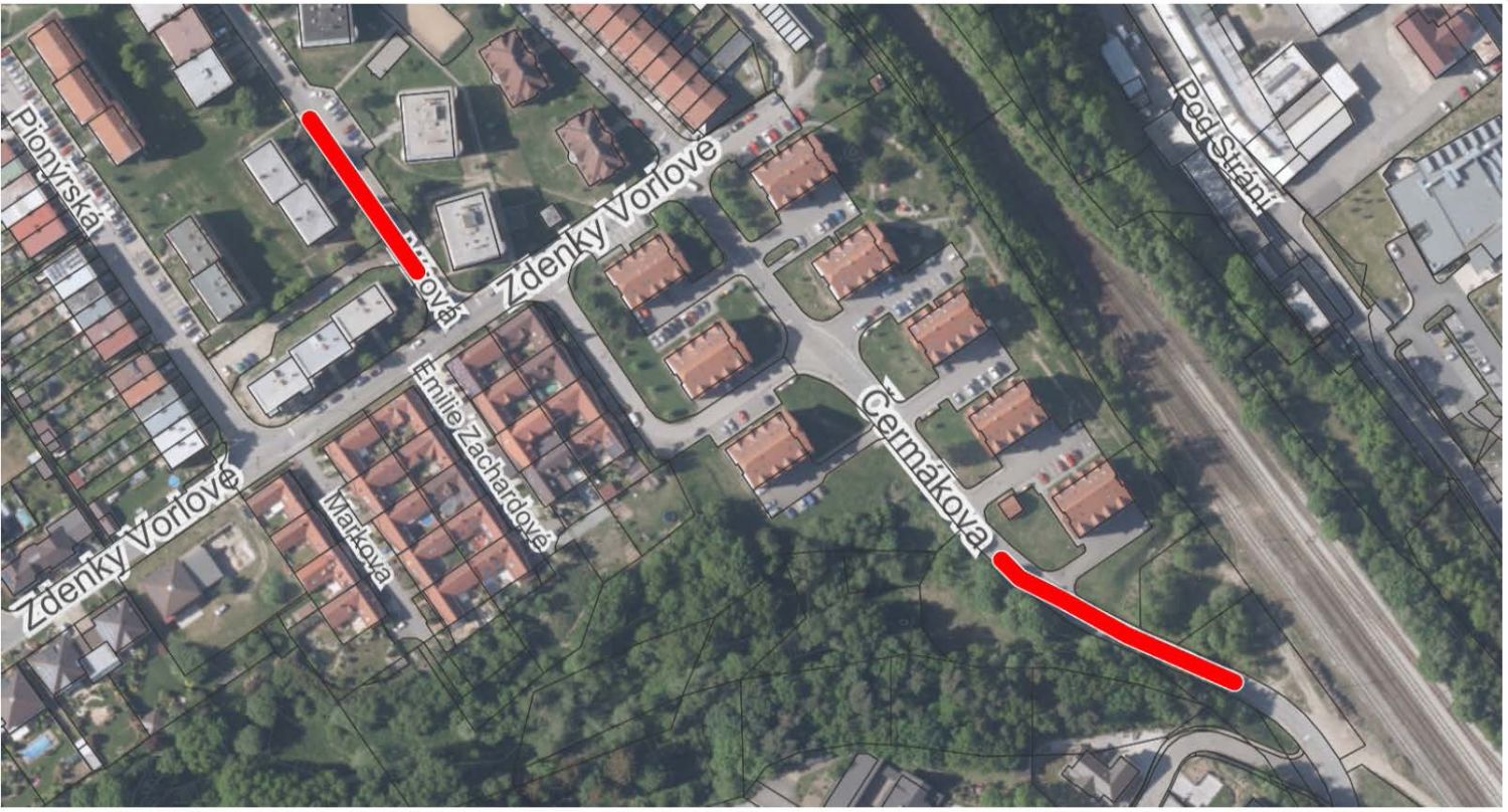 Opravované cesty jsou vyznačené v přiložených mapkách.
