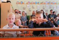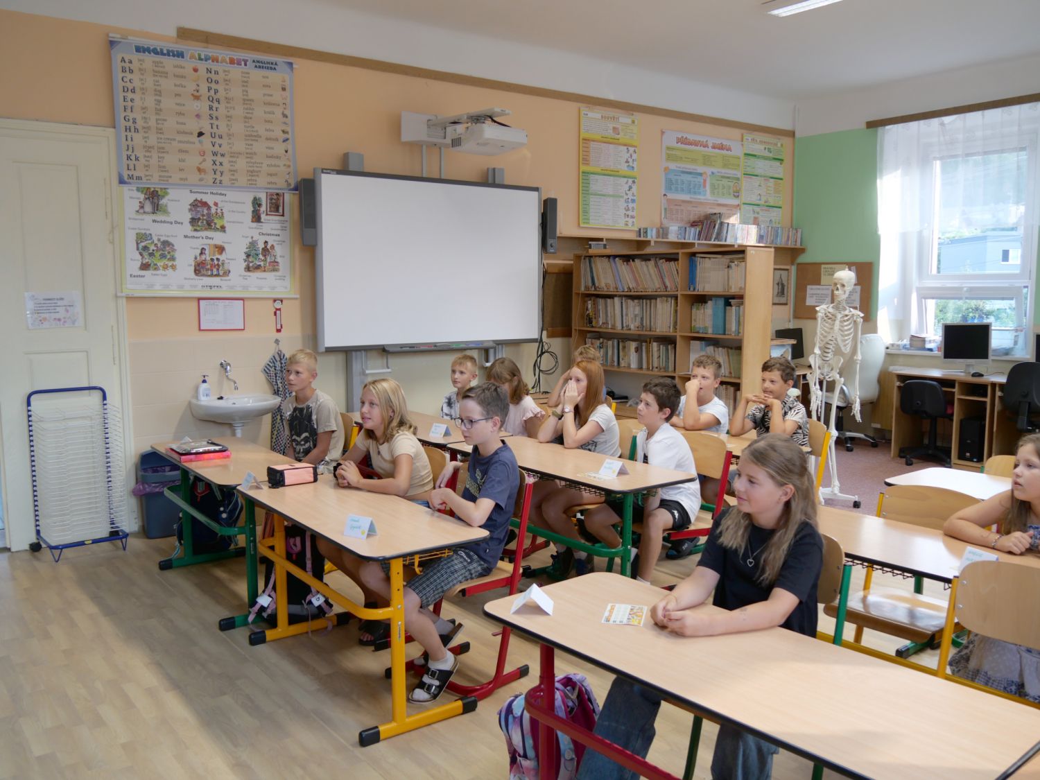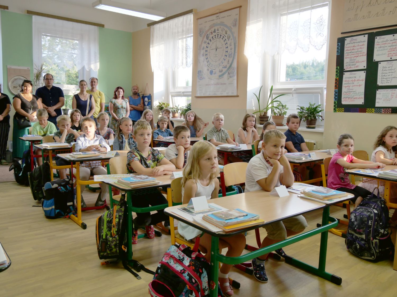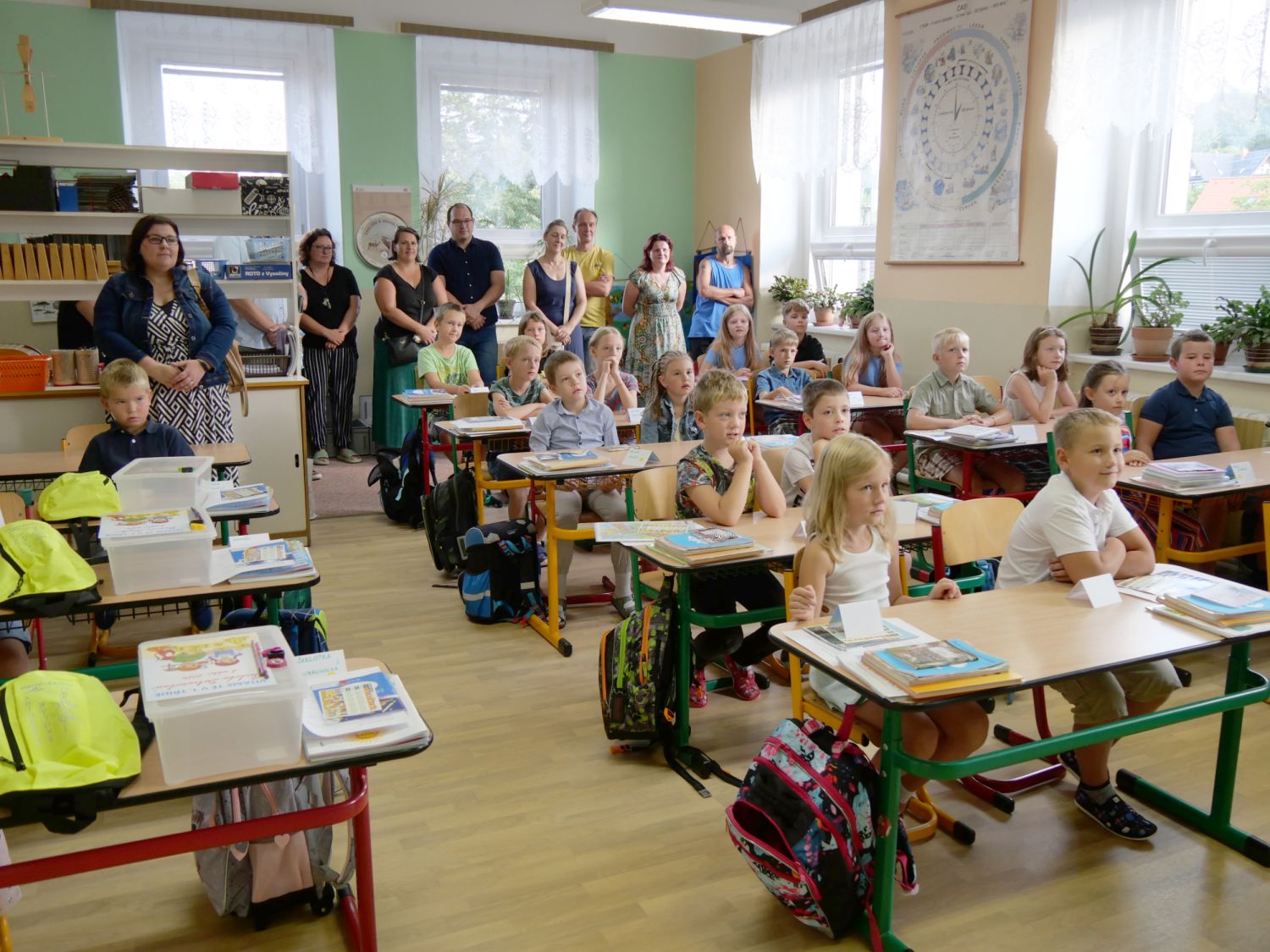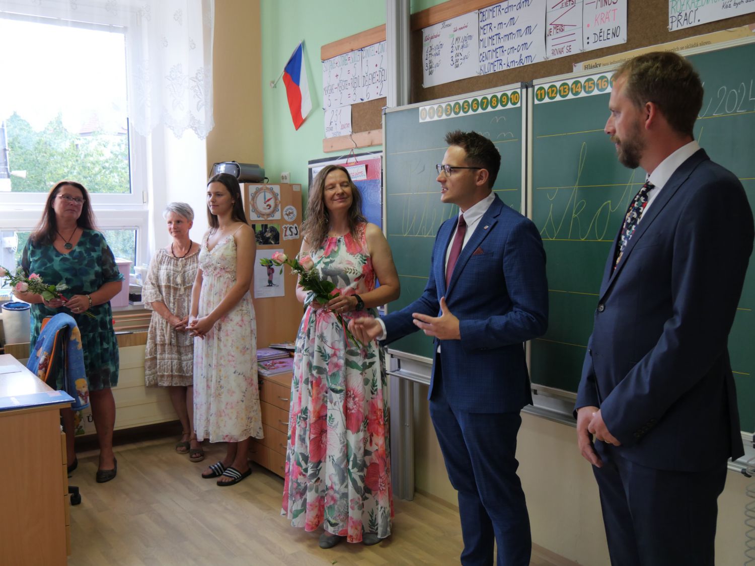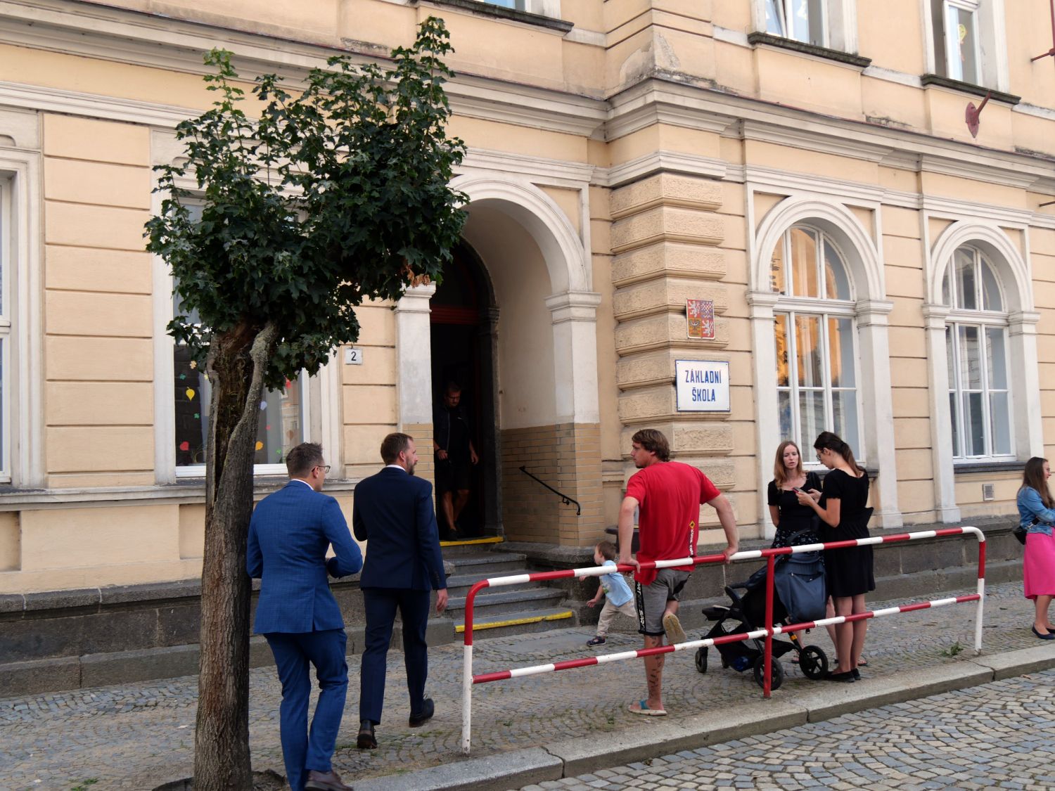 Prvňáčky na ZŠ Školní přivítal starosta města Alexandros Kaminaras, který dětem popřál, aby se jim ve škole líbilo a užili si to. „Devět let uteče jak voda a za chvíli už budete stát na pódiu při vyřazování deváťáků," uvedl starosta s tím, že čas ve škole, zvlášť v té dobré, letí rychle.