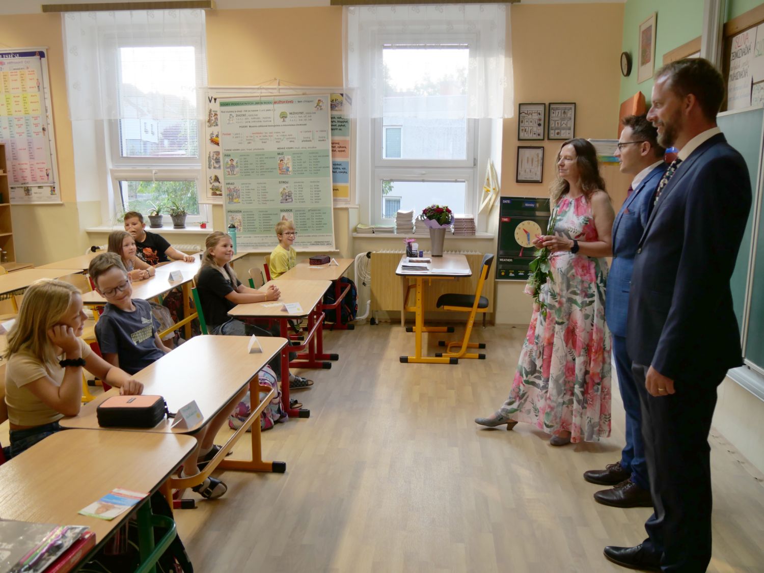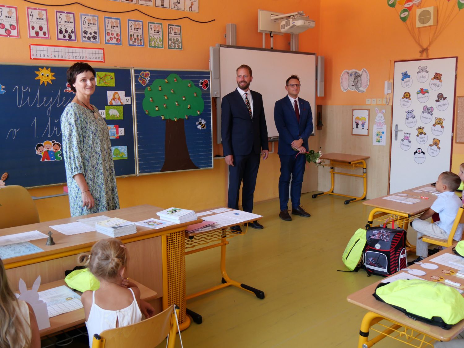 Místostarosta města Martin Kaman přivítal prvňáčky v ZŠ Lhotky a poté v ZŠ Komenského, a to za doprovodu krajského radního Jana Břížďaly. „Paní ředitelka Eva Součková tady dělá doslova zázraky, když se jí daří držet pět tříd v tak malé škole. Dělá to tak dobře, že školu navštěvují i děti z Velkého Meziříčí," ocenil Martin Kaman ve lhotecké malotřídce.