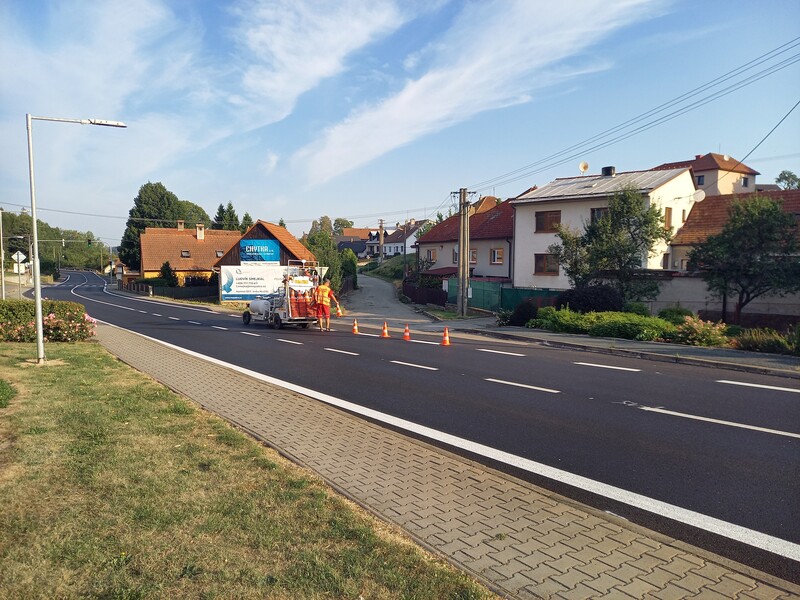 V tomto týdnu probíhá aplikace vodorovného dopravního značení na opravenou komunikaci II/360 od Zlatého křížku přes Martinice po odbočku do obce Kozlov. Odborná firma provádí nástřik tzv. hlučného plastu na stávající značení. Toto opatření zvyšuje bezpečnost řidičů a také chodců. Pokud vozidlo najede na takto značenou část komunikace, hlučný zvuk upozorní řidiče, že je na krajnici a musí vozidlo srovnat do jízdního pruhu. Komunikace je tedy nejen kvalitně opravena, ale je také zvýšena její bezpečnost.