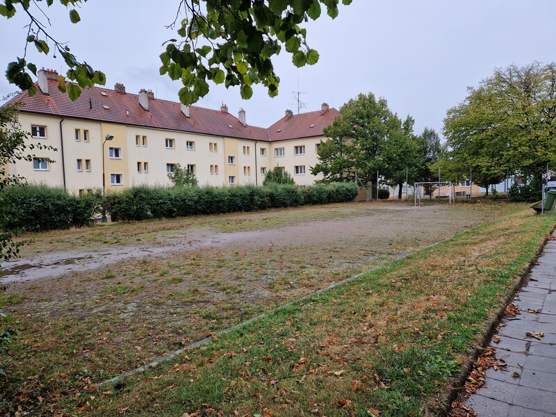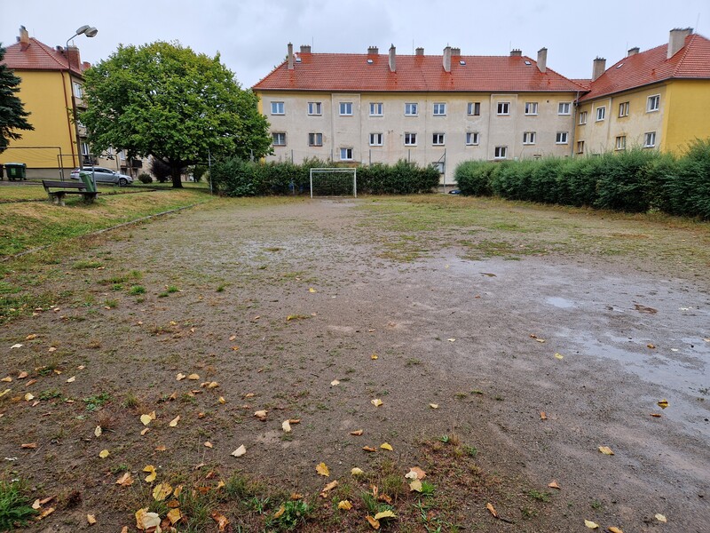 Město obnoví hřiště mezi ulicemi Na Výsluní, Kolmá a Nad Gymnáziem. Sportovní plácek dostane do půli října nový prosívkový povrch.