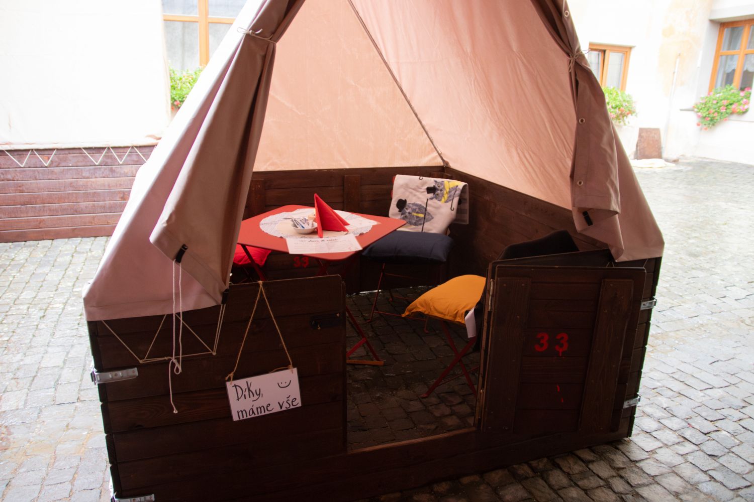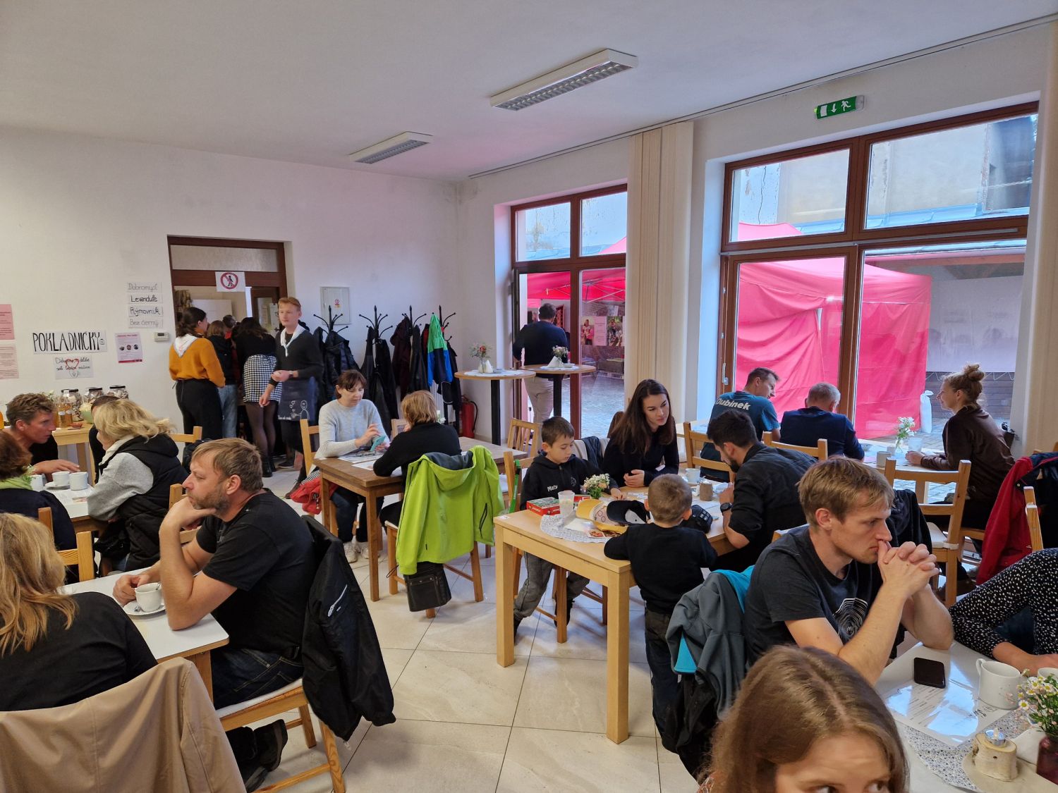 „Kavárna bude! Ani déšť nás nezastaví,“ napsali skauti na sociální sítě v době, kdy se kvůli počasí všude kolem rušily akce. A lidé jejich odhodlání oceňovali. Zastavovali se na kávu, zákusek, někteří usedli pod přístřešek ve dvoře fary, další do stanu s podsadou a jiní dali přednost teplu farního sálu. Příjemné prostředí kavárny zpestřila sobotní párty či nedělní živá klavírní hudba v podání Matěje Hampla. Člověk si tak chvílemi připadal jak v kavárně Slavia v centru Prahy. A komu se vůbec nechtělo vyrazit z domova do deště a zimy, ale přitom by rád přispěl, nechal si kávu přivézt až ke dveřím bytu. I takovou službu totiž skauti nabízeli. Dokázali tak, že když se chce, všechno jde.
