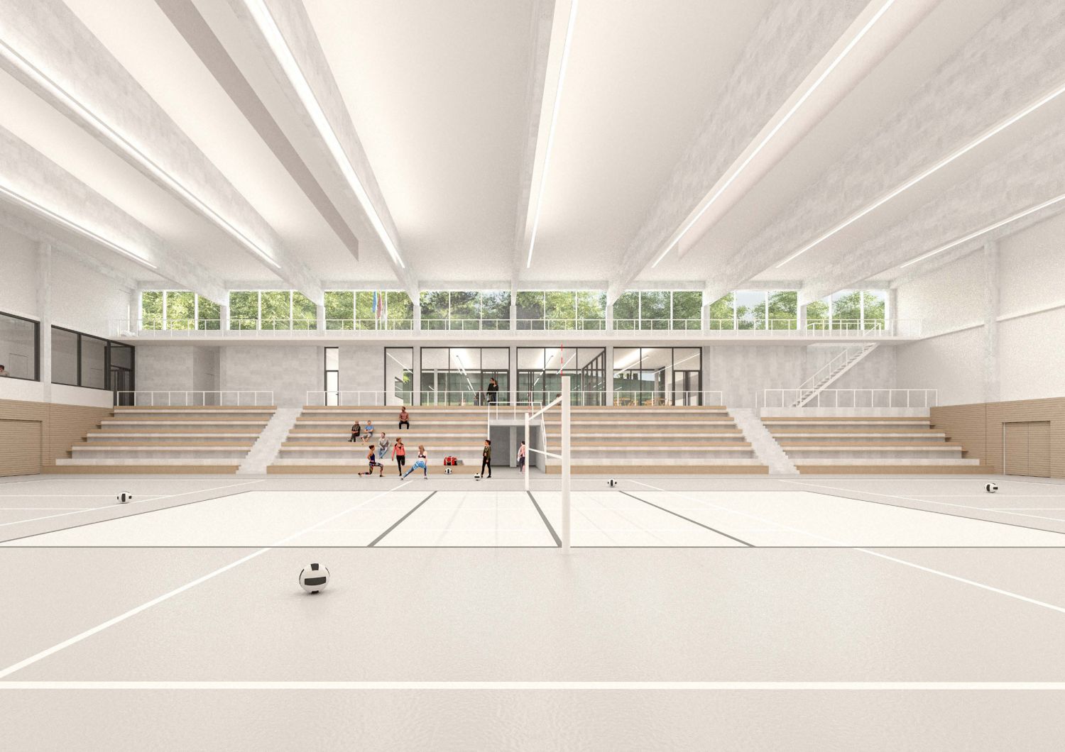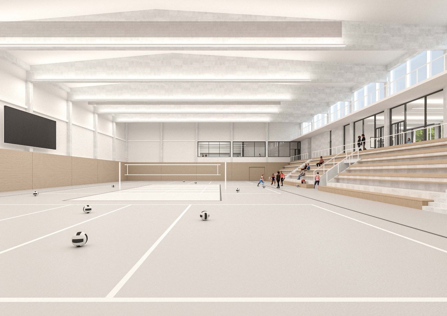 „Na severní stěně nad hlavním vstupem jsme navrhli dominantní, velké okno. Přinese obrovskou výhodu denního světla uvnitř haly, přičemž sportovce nebude rušit slunce,“ popsal Aleš Papp. Vnitřní uspořádání počítá s velkým házenkářským hřištěm, které lze dle potřeby napříč rozčlenit na tři volejbalové kurty. Pro basketbal pak budou v hale spouštěcí koše.