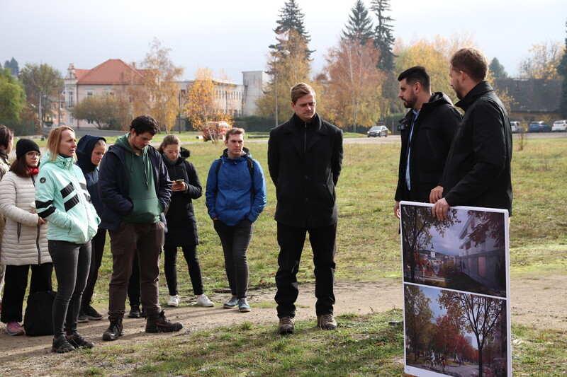 Exkurze z Mendelovy univerzity nemohla minout ani lokalitu Svit, pro kterou má město čerstvý návrh řešení jejího budoucího rozvoje. S vítězným návrhem, který vzešel z urbanistické soutěže, studenty seznámili na místě starosta Alexandros Kaminaras spolu s místostarostou Martinem Kamanem. „Návrh, který nyní máme v rukou, vhodně řeší napojení lokality na zbytek města a hlavně, řeší lokalitu tak, aby nekonkurovala náměstí, jako by konkuroval supermarket, kdyby tady stál, ale naopak je posilovala,“ vysvětlil studentům starosta.