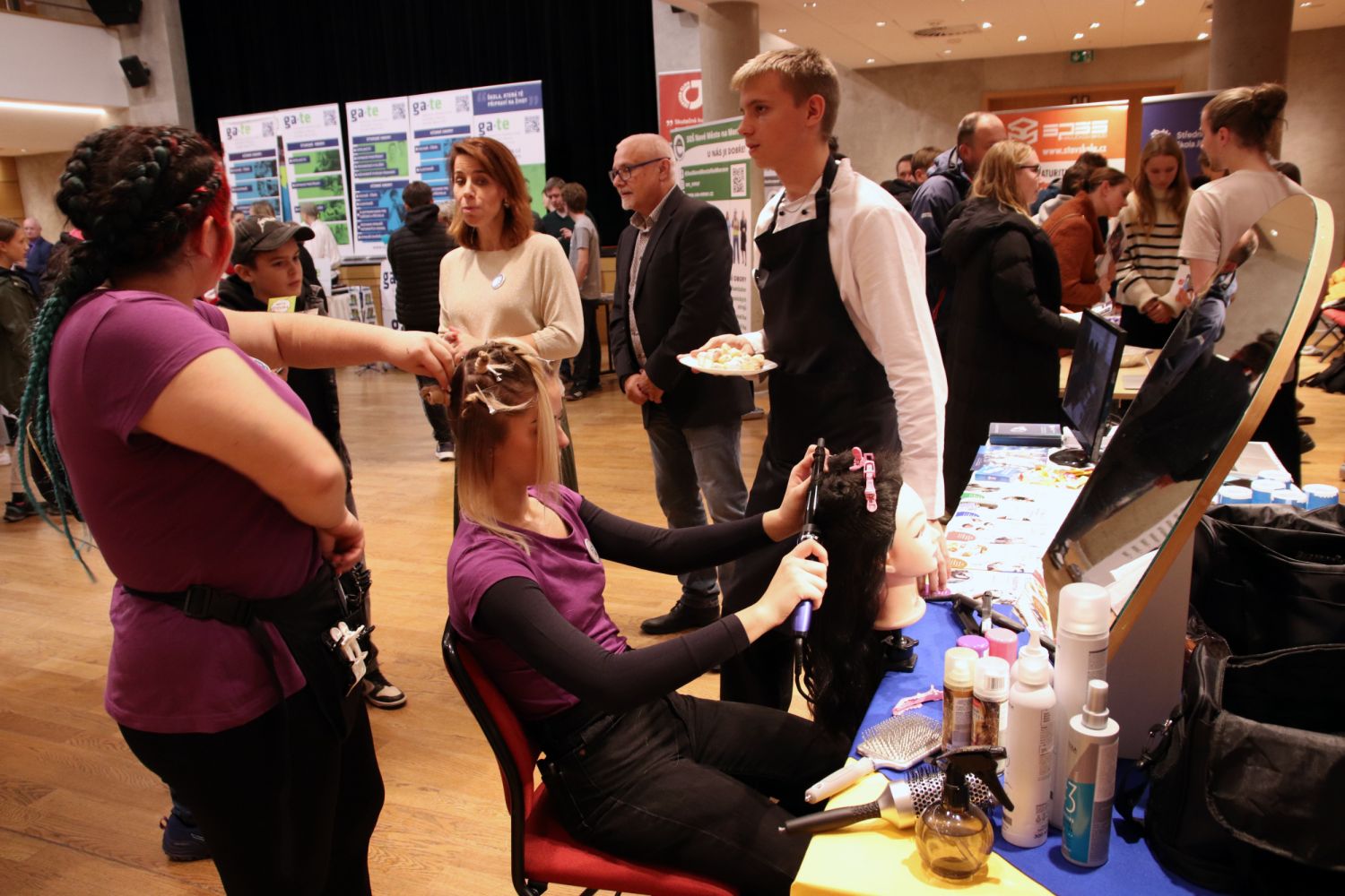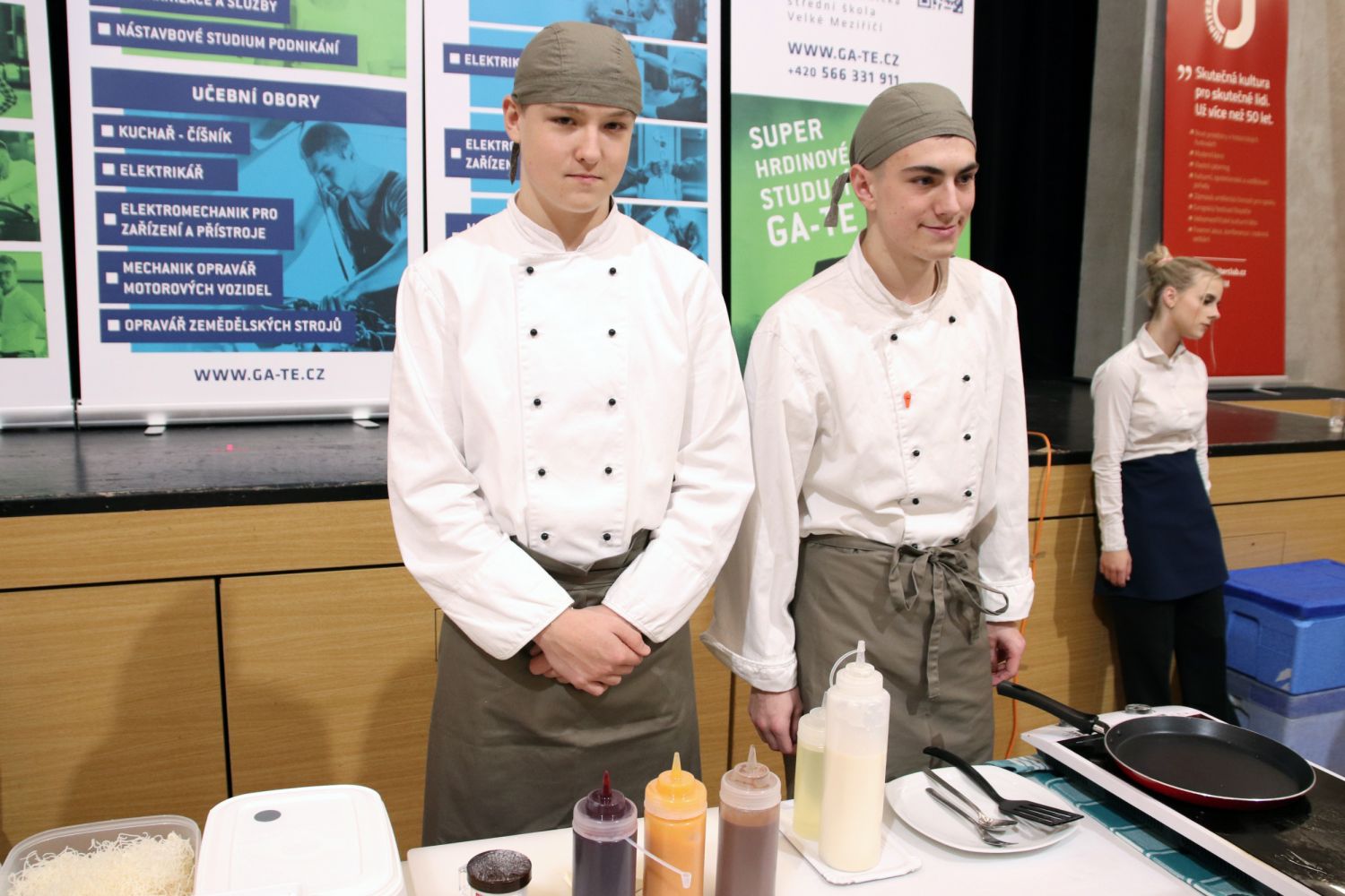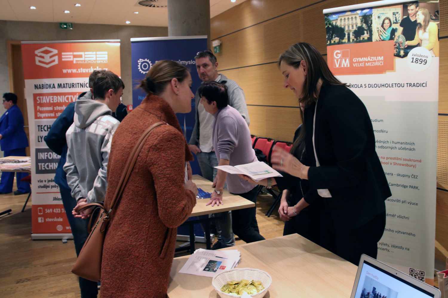Stánky, informace o studiu, konzultace, praktické ukázky, tak probíhá přehlídka středních škol. Obě velkomeziříčské Gastro-technická střední škola, čili Světlá, a gymnázium spolu s dalšími školami z Velké Bíteše, Žďáru nad Sázavou, Třebíče, Nového Města na Moravě, Bystřice nad Pernštejnem, Jihlavy, Humpolce, Havlíčkova Brodu, Pozďatína, Moravských Budějovic ale i z Brna ve velkém sále nabízely studijní obory zaměřené na stavebnictví, průmysl, zdravotnictví, gastronomii, pedagogiku, všeobecné vzdělání i mnoho řemesel, takže bylo z čeho vybírat. Rodiče s dětmi se mohli dopodrobna vyptat na vše, co je zajímá, nasbírali řadu informačních materiálů i zkušeností od samotných studentů, kteří byli u mnoha stánků také k dispozici.