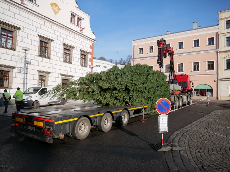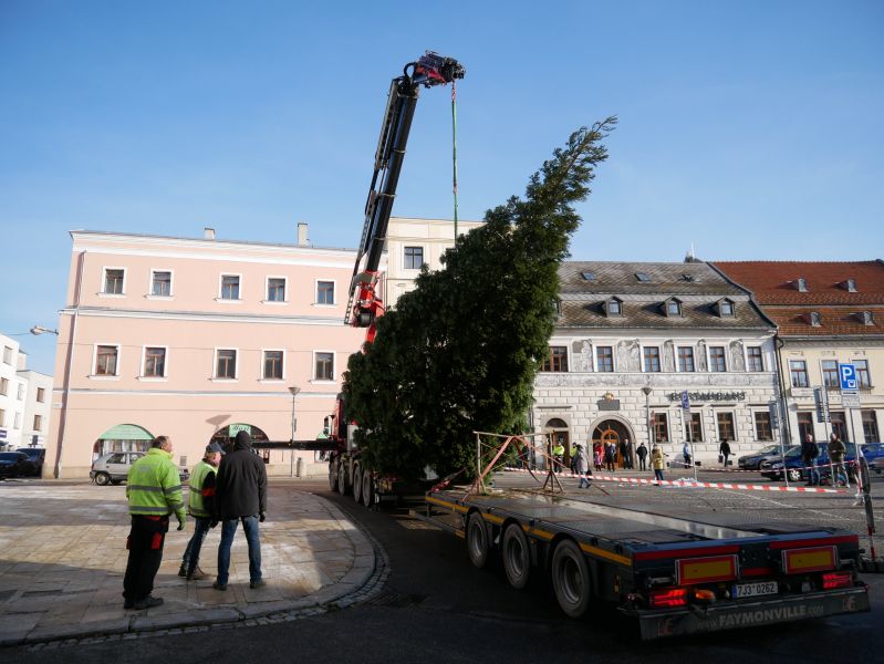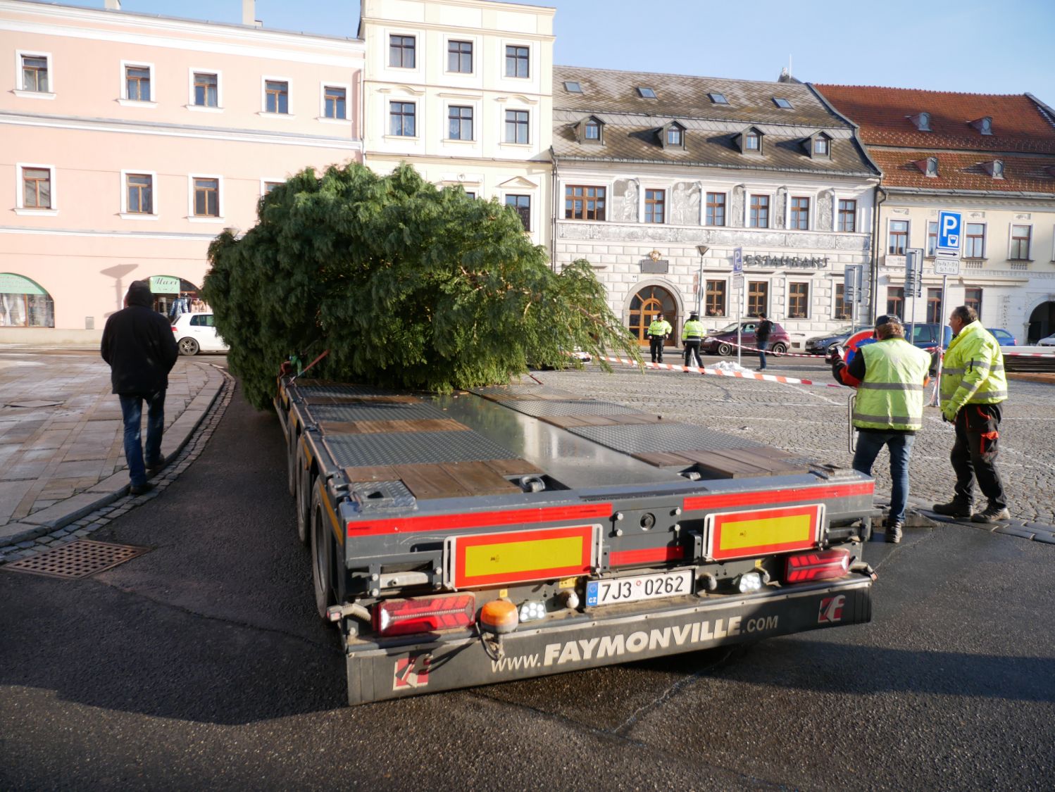 Na svatou Kateřinu, tedy v pondělí 25. listopadu, krátce před desátou hodinou dopolední dorazil na velkomeziříčské náměstí nákladní automobil a přivezl strom, který bude letos zdobit vánoční náměstí.