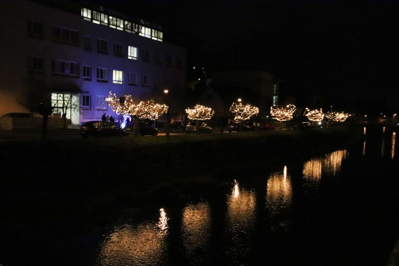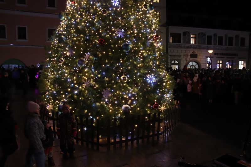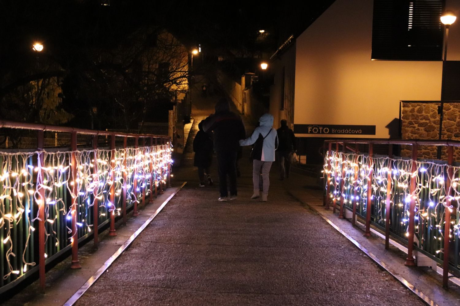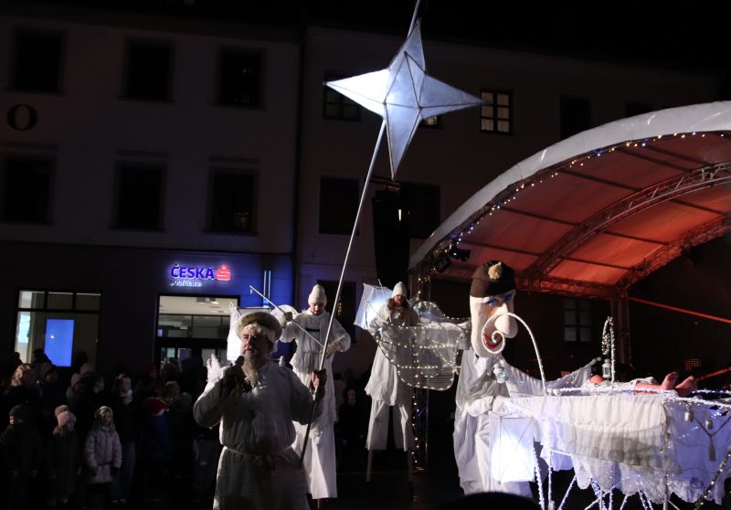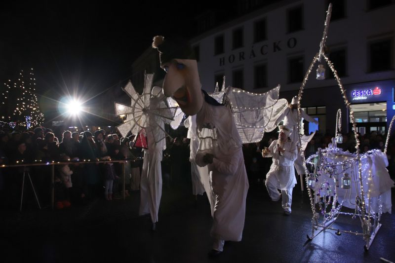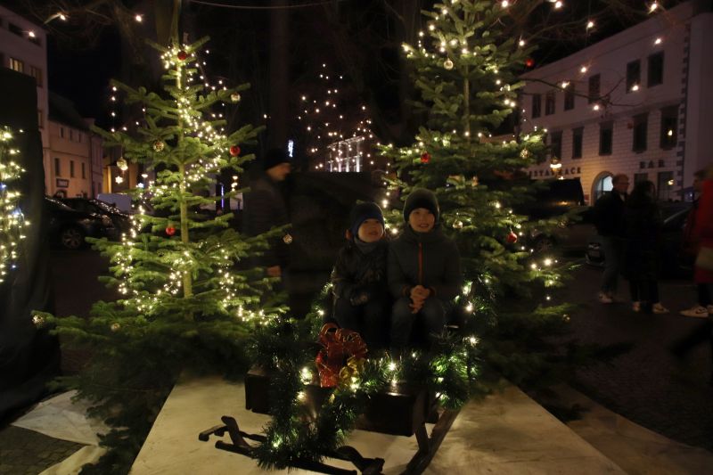Z otevřených stánků se linula vůně punče, který přišel v chladném počasí vhod, na kluzišti se proháněli první malí bruslaři, z pódia zněly vánoční písně v podání souboru Ikaros a kolem nazdobené sekvoje, která je letos uchazečem o nejkrásnější vánoční strom minimálně Vysočiny, se tlačily davy lidí v očekávání slavnostního rozsvícení výzdoby. Ta je letos zcela nová a rozmístěná i mimo náměstí. Má dva vycházkové okruhy s vláčkem, sobem, medvědem, velkou baňkou či bránou. „První vede z náměstí Svitem kolem řeky Balinky a druhý přes Moráň podél Oslavy až k základní umělecké škole. Bude-li se vám výzdoba líbit, příští rok ji třeba ještě rozšíříme,“ slíbil z pódia starosta Alexandros Kaminaras, pak vzal do náručí svého malého syna a vyzval přihlížející děti, aby společně s ním odpočítaly poslední vteřiny, než se celé město rozzáří. Když se tak stalo, vydechly nadšením. A to zatím netušily, že přijde ještě jedno překvapení. Z Radnické ulice se zjevili bílí andělé s velkými křídly tančící na chůdách, kteří táhli obrovské sáně a zpívali. Tuto taškařici přivezlo divadlo Kvelb z Českých Budějovic. Závěr programu pak patřil opět Ikarosu.