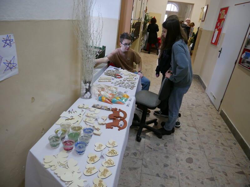 Na jarmarku si příchozí mohli zakoupit ručně vyráběné produkty, na jejichž tvorbě se podílely samotné děti spolu s učiteli. Návštěvníci mohli vybírat z vánočních ozdob, malovaných kamínků, svícnů či drobných dárků.
