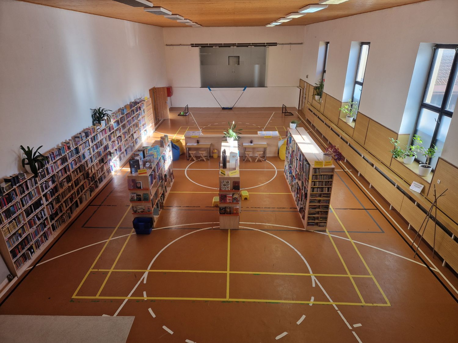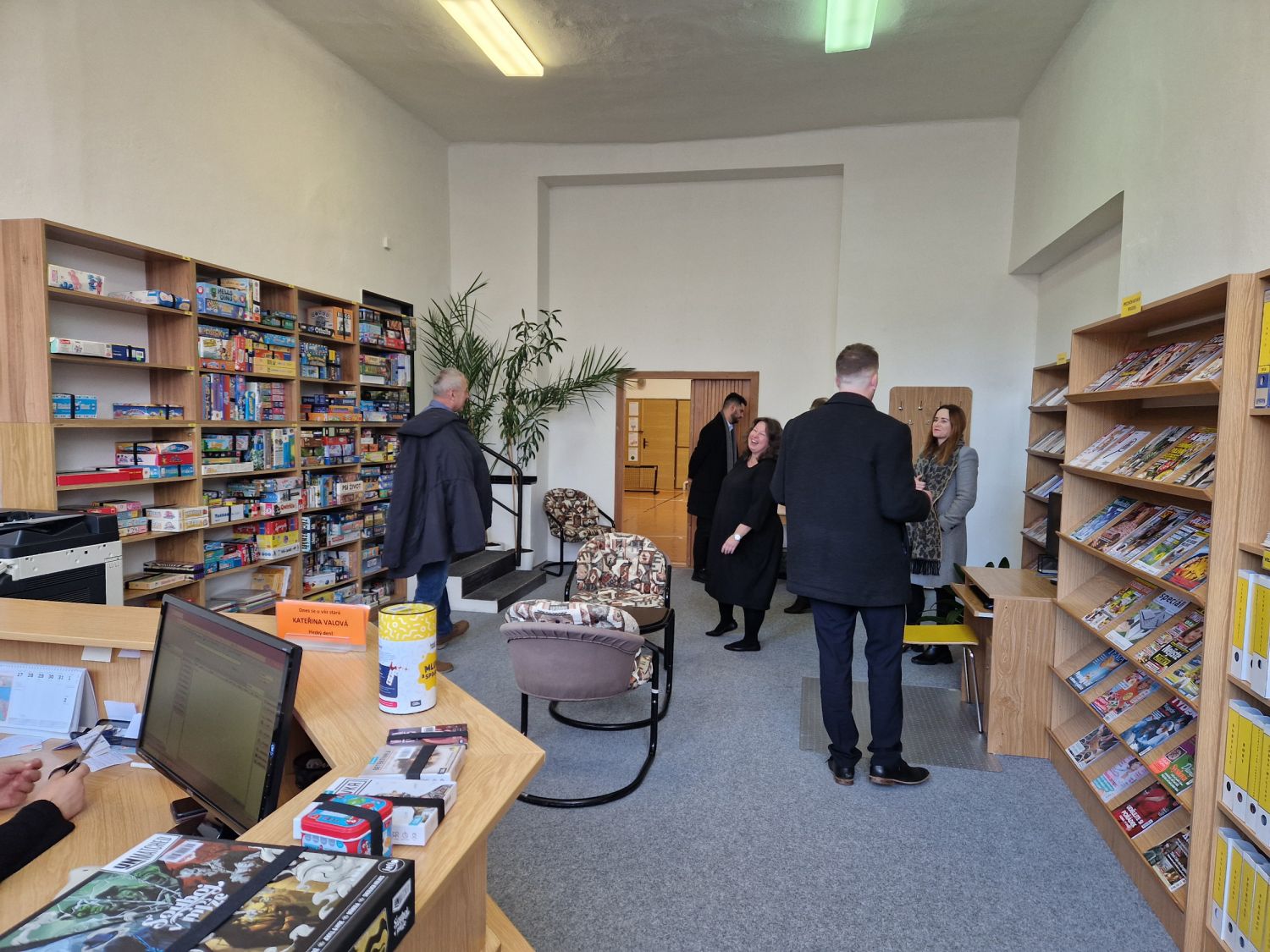 Radní poté navštívili provizorní prostory knihovny v Charitě, aby se přesvědčili, jak se kolektiv knihovny vypořádal s různými nedostatky budovy. Těch je poměrně dost, přesto se knihovnicím podařilo zejména z prostoru bývalé tělocvičny vymáčknout maximum. „Nakoupili jsme drobné sportovní náčiní a děti se tu mohou vydovádět, pohrát si, tvořit,“ popsala ředitelka Ivana Vaňková.