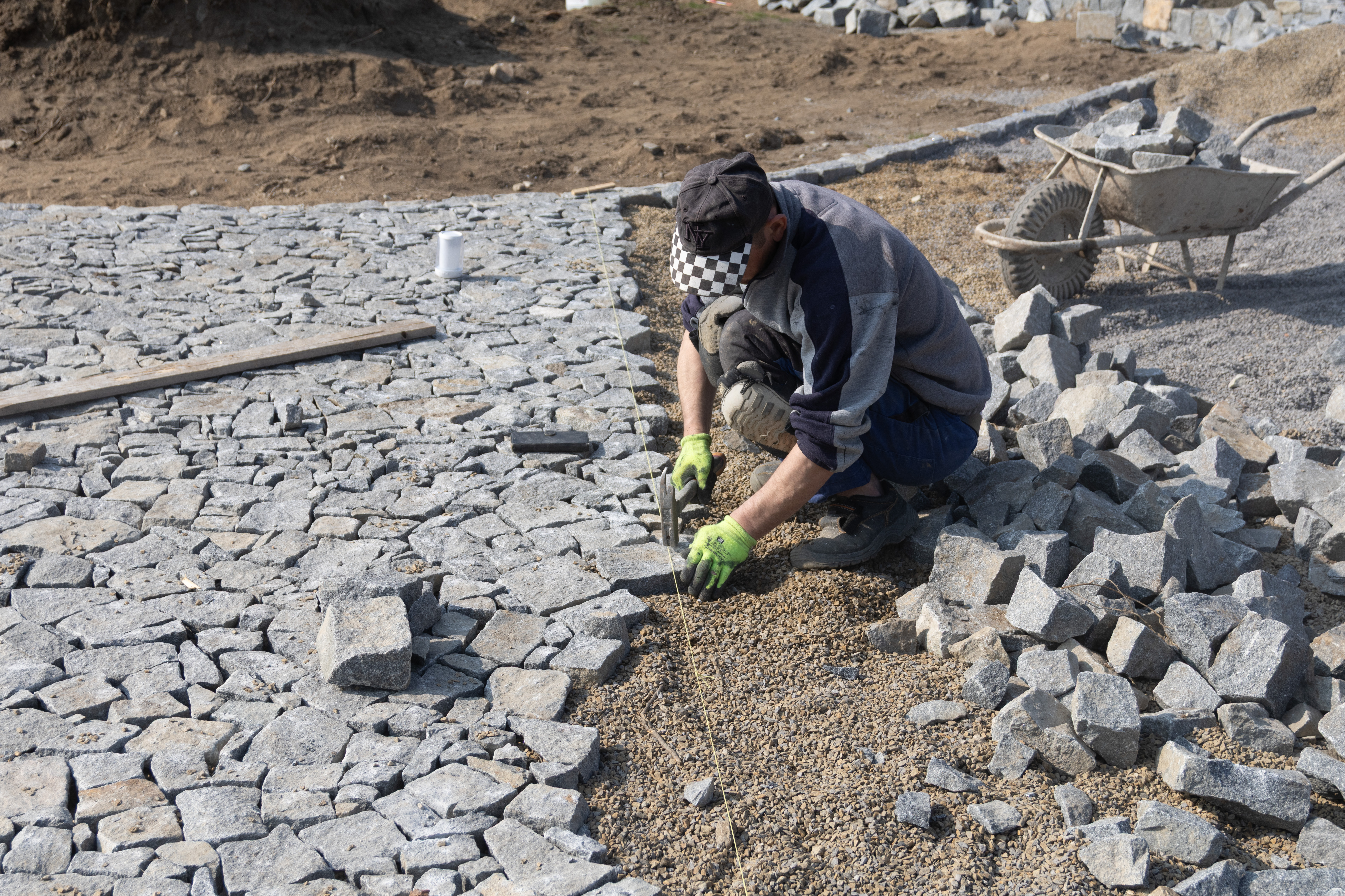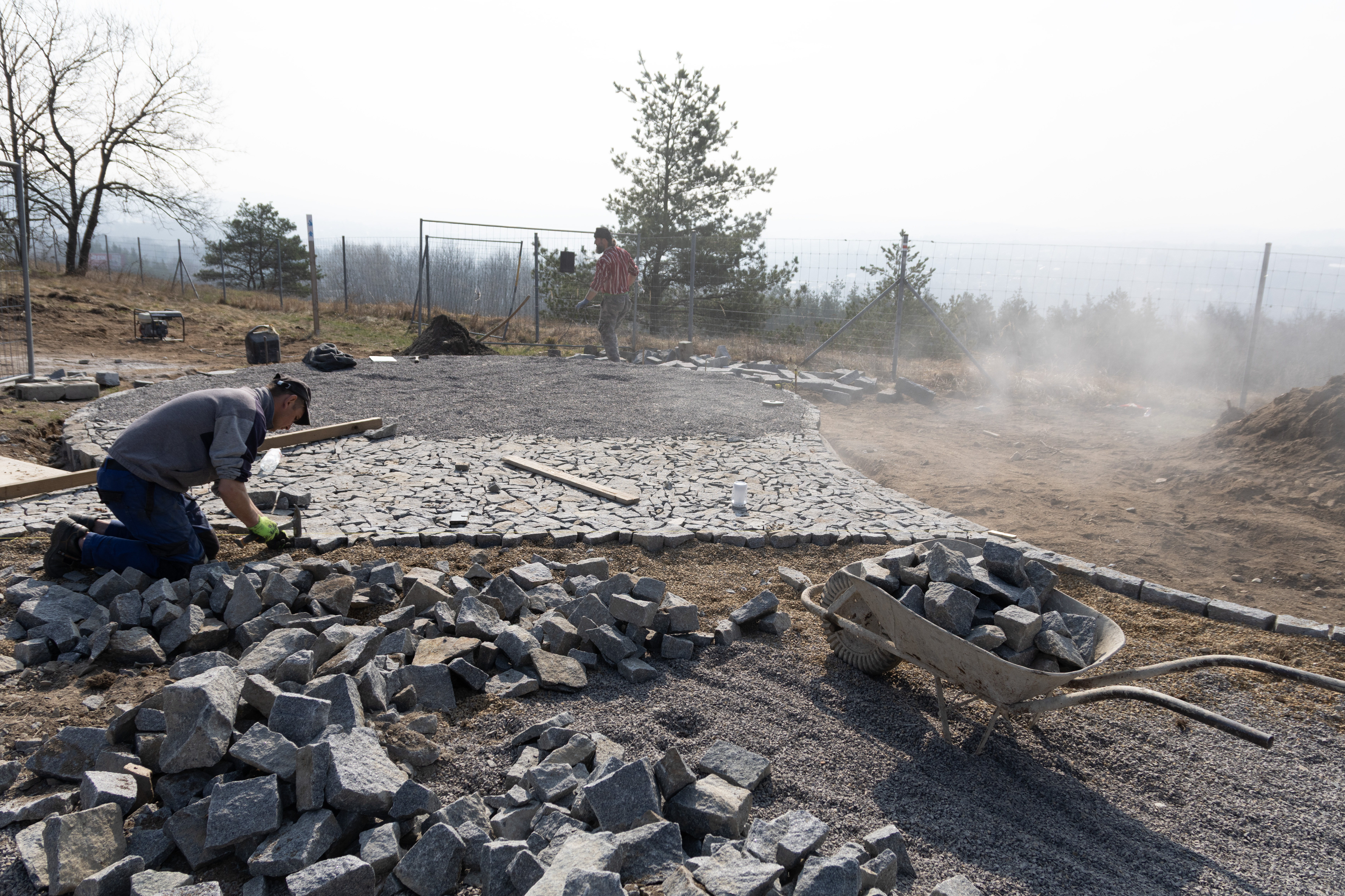 Zastávka na poutní cestě do Netína dostává důstojný vzhled. Plastový koš, rozbitá lavička, rezavé zábradlí jsou pryč. Níž už se posunul i plot kolem dálnice, který bránil výhledu na město.