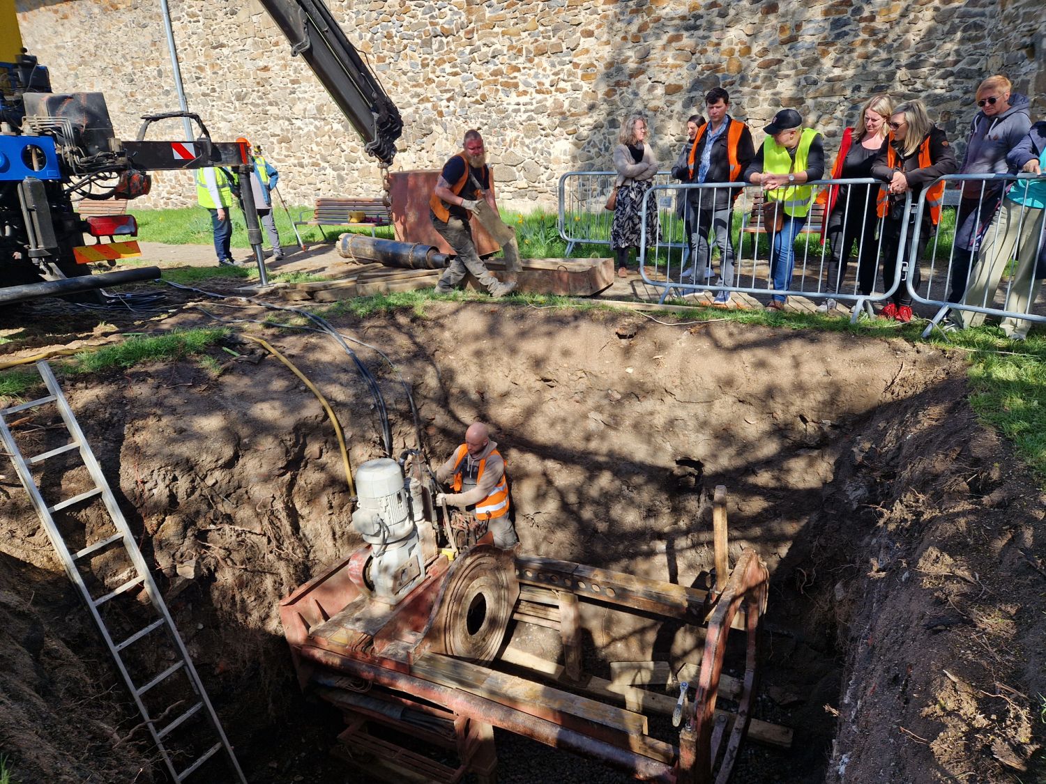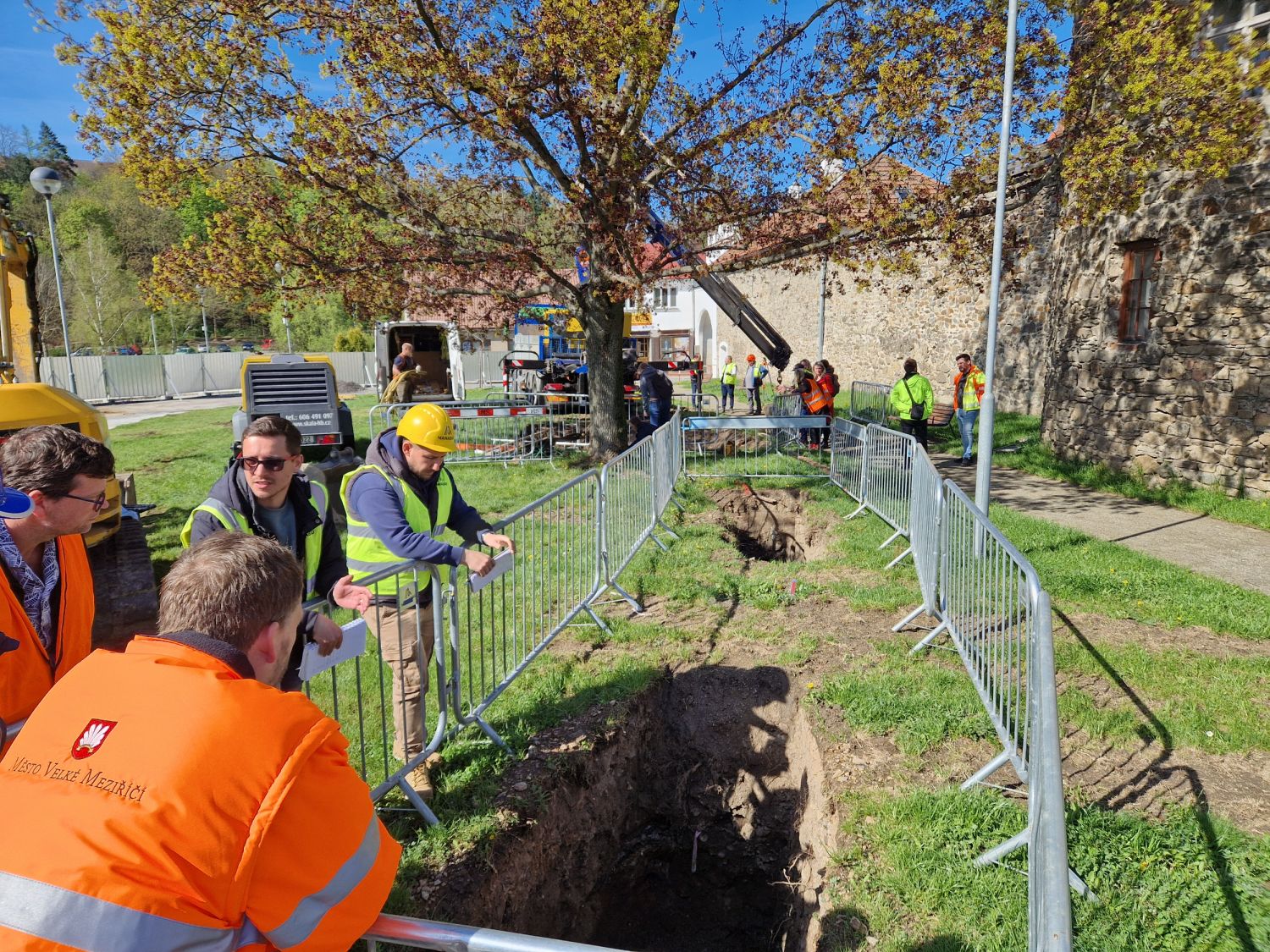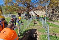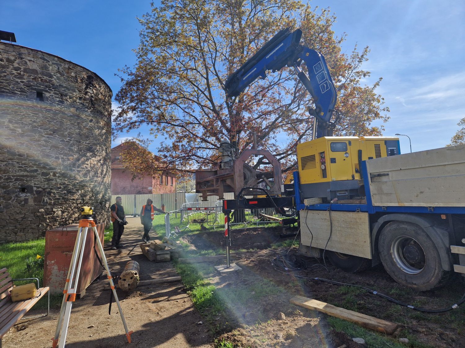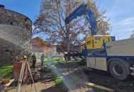 Stavaři dnes v parčíku za hradbami provádějí protlak pro vodovod, který vede kolem vzrostlého javoru.