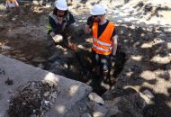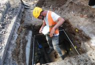 Zatrubněný náhon je odkrytý už i v ulici U Bašty a za hradbami, nyní stavaři řeší, jakým způsobem povedou vodovod, který se stokou kříží.