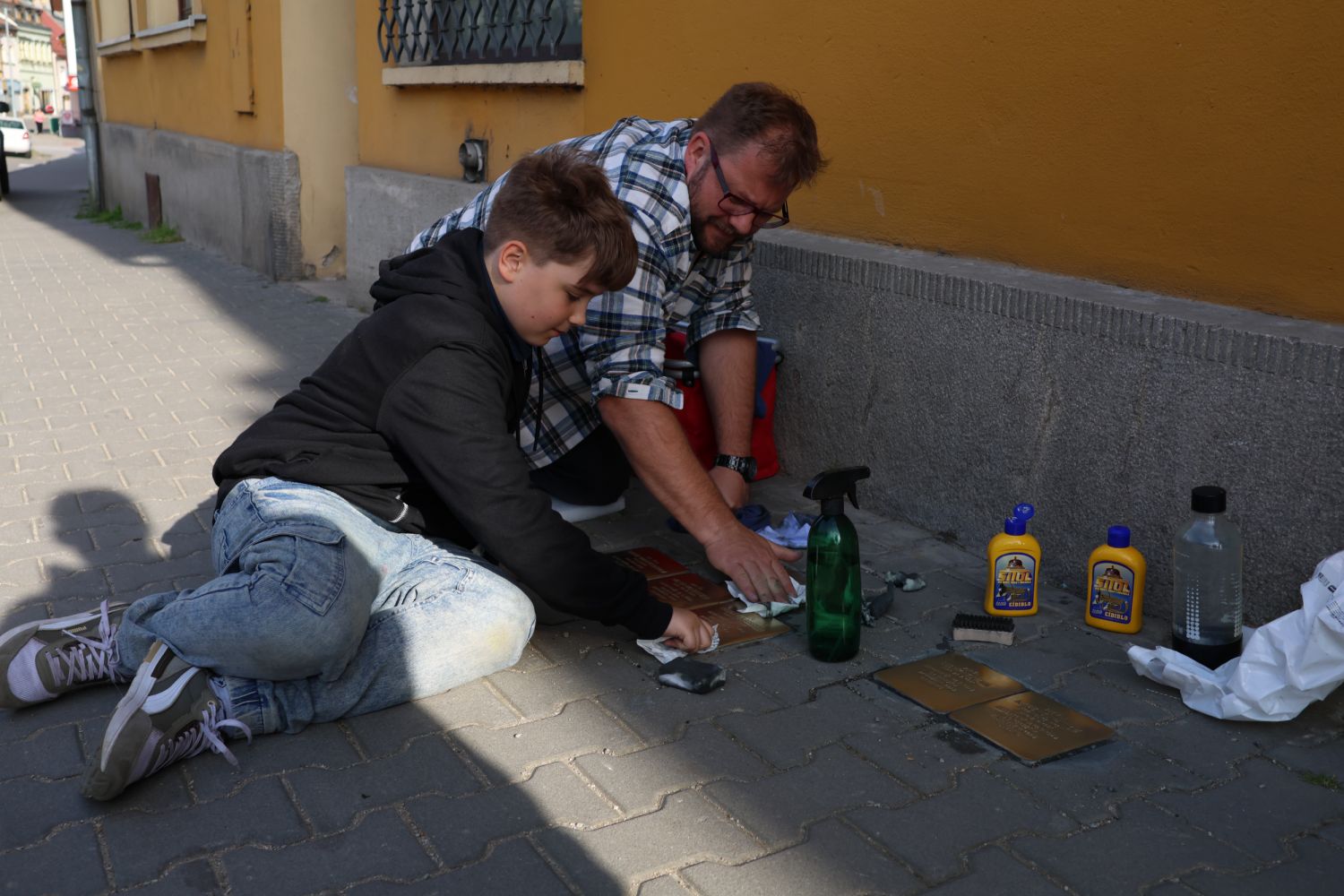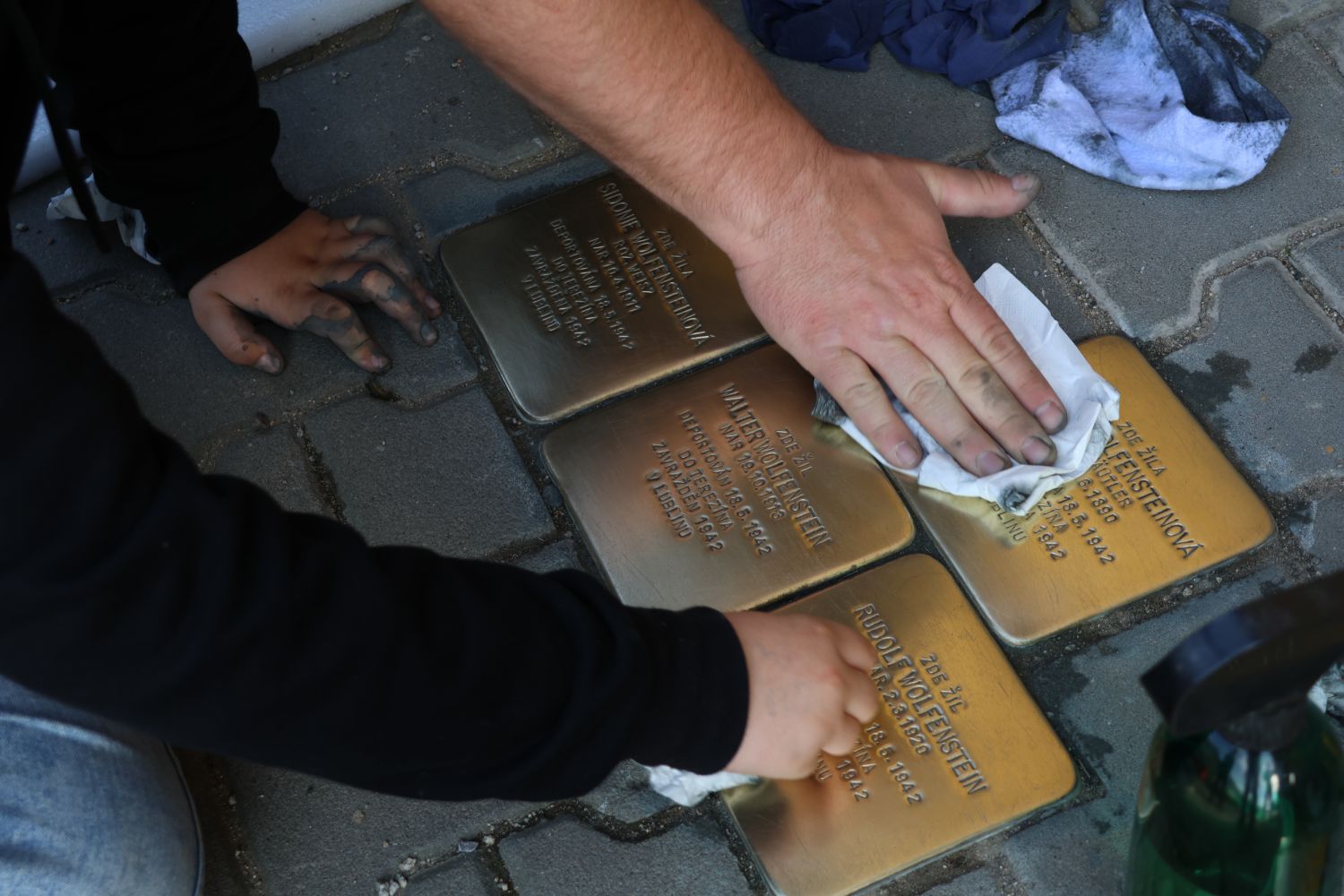 Dobrovolníci se ve středu 14. května ujali letošního prvního čištění Kamenů zmizelých, které připomínají velkomeziříčské oběti holocaustu.