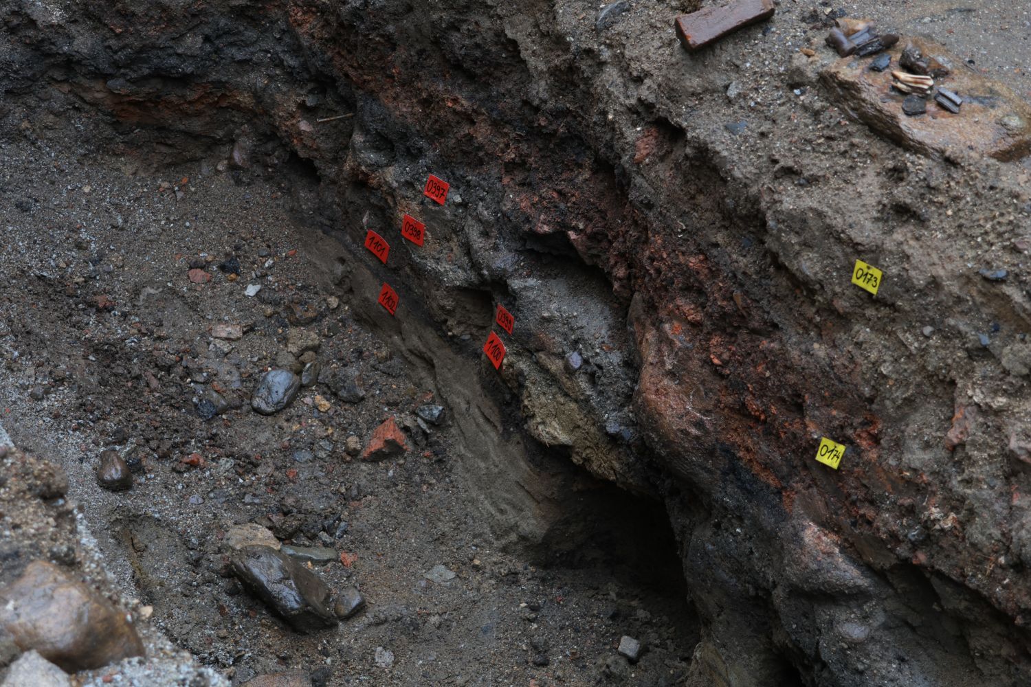 V severní části ulice archeologové odkryli pozůstatky měšťanské zástavby a také mlýnského náhonu, který již ve středověku vedl vodu k mlýnům ve městě a později odděloval starší město od jeho novější židovské části. Našli i zbytky dřevěných koryt, které byly svažované směrem do náhonu.