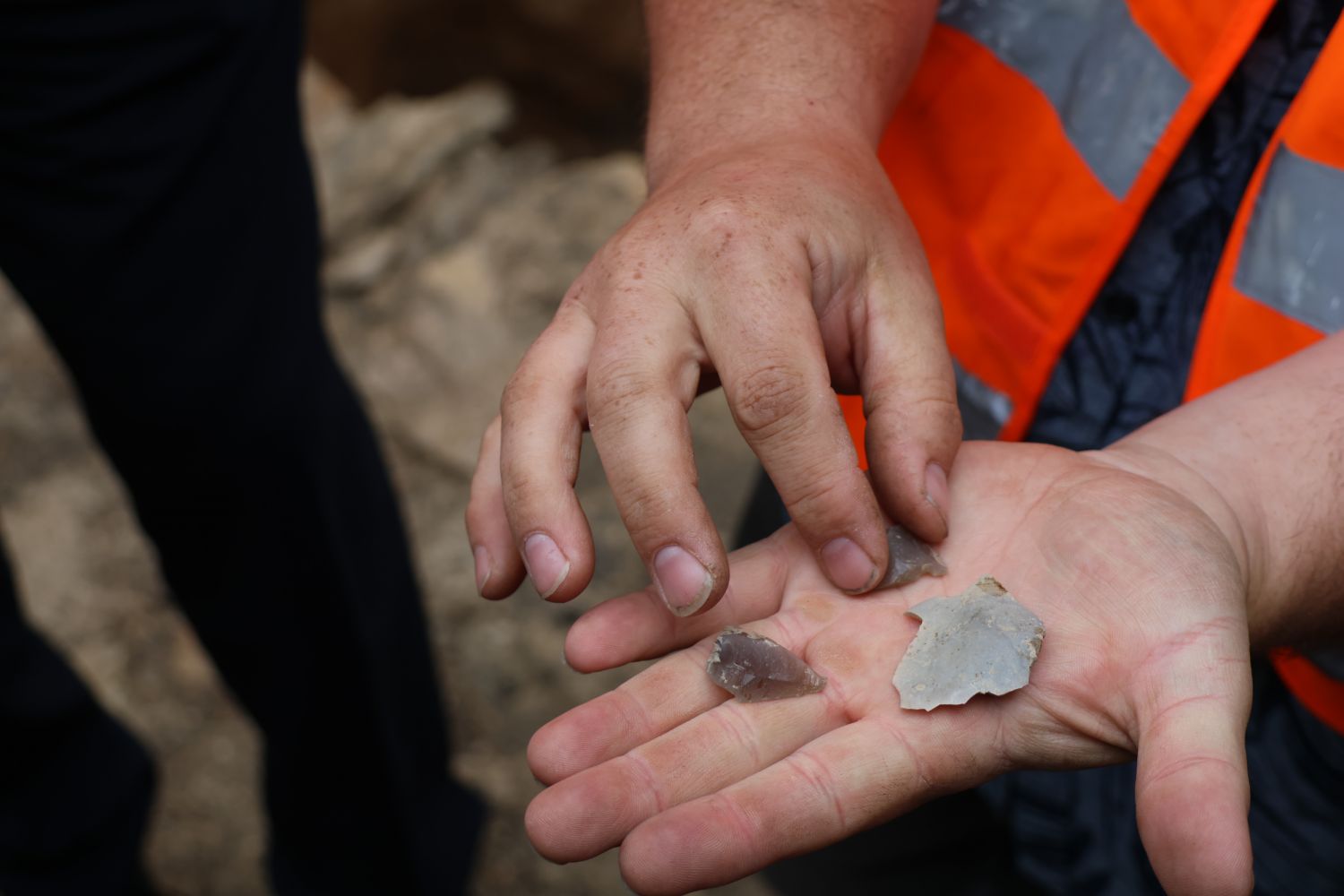 Neméně zajímavé jsou i nálezy z doby kamenné. Jde o kamennou sekeru, která sem však byla přenesena, neboť ležela v mladších vrstvách. „Lidé ve středověku ji používali jako hromový klín pro ochranu svého obydlí. Dokonce s takovými nálezy tehdy i obchodovali, tak byly žádané,“ informoval archeolog Šimon Kochan. Kamenné úštěpy, které archeologové v Kostelní také objevili, jsou ale nejspíš původní. „Ukazují na nejstarší obývání lokality při soutoku řek v době mezolitu,“ vysvětlil a dodal: „Jde o zajímavý nález, neboť mezolitických nálezů moc nebývá.“