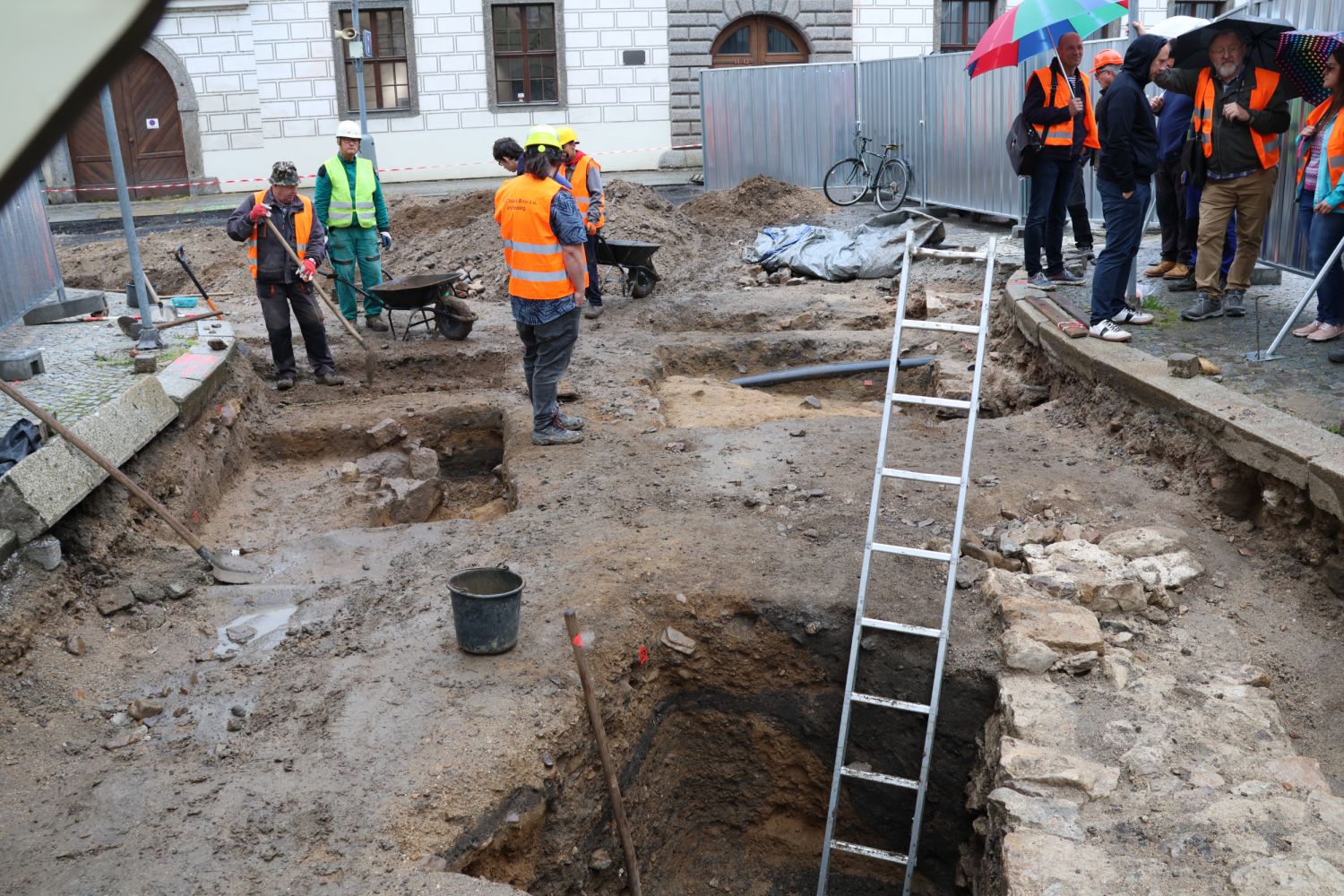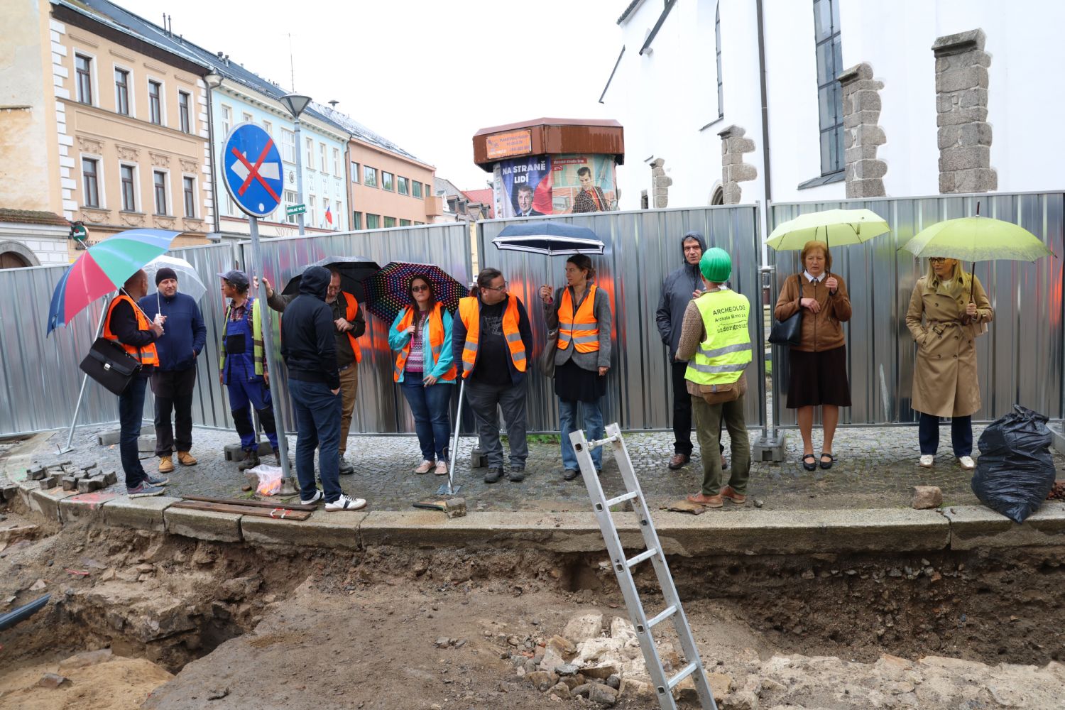 Kamenné úštěpy z mezolitu, zajímavý pohřeb dokládající popravu, hromový klín či příkop, který nejspíš ohraničuje původní osídlení ještě před založením města, takové objevy prozatím učinili archeologové během záchranného výzkumu v Kostelní ulici.