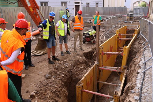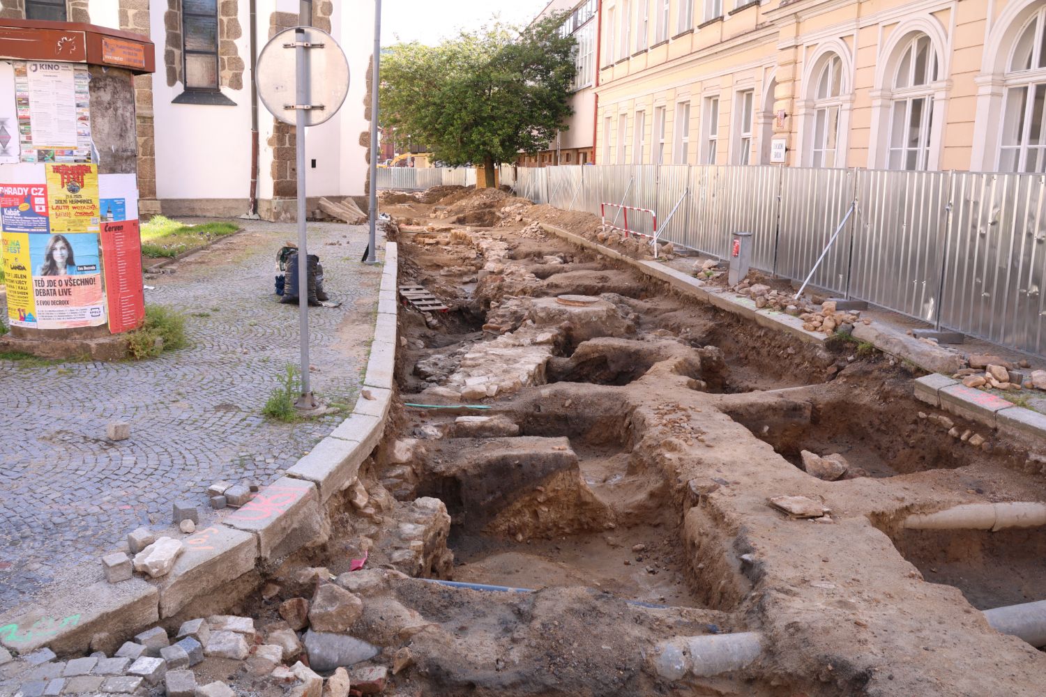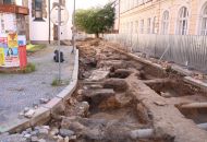 Zhruba šest týdnů od začátku května v Kostelní ulici pracovali archeologové. Jejich záchranný výzkum přinesl řadu pro město významných objevů, ať už očekávaných kosterních pozůstatků v místě středověkého hřbitova, tak i nečekaných stop po pravěkém člověku z doby kamenné. Nyní se přesunuli před hradby u dolní brány a stavaři tak mohou začít s pokládáním sítí v Kostelní ulici. „Příští týden výkopy po archeologickém výzkumu zasypeme a zhutníme, abychom mohli začít se stavbou vodovodu a kanalizace,“ uvedl stavbyvedoucí Gardenline Milan Pastirčík. Stavba splaškové kanalizace stále probíhá i v Komenského ulici.