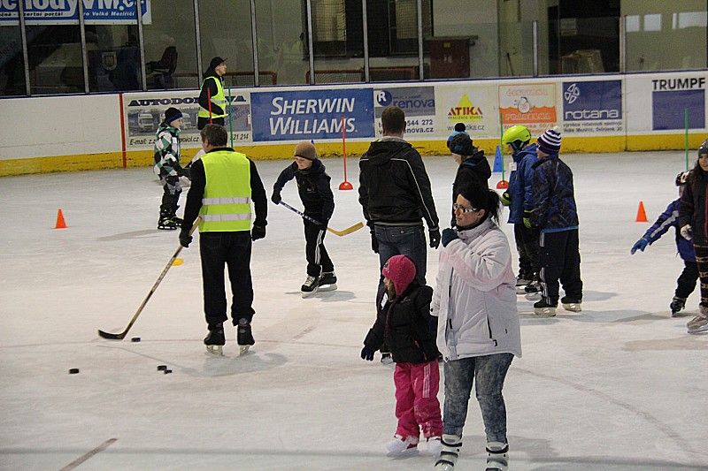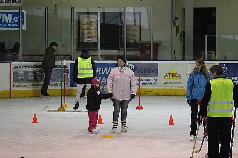 Od 14. hodiny si mohly příchozí děti, ale i jejich rodiče vyzkoušet na čtyřech stanovištích například slalom či střelbu hokejkou na branku. Členové komise Zdravé město připravili pro celkem 92 dětí dvouhodinový doprovodný program na ledě, po jehož skončení nechyběly i drobné odměny.