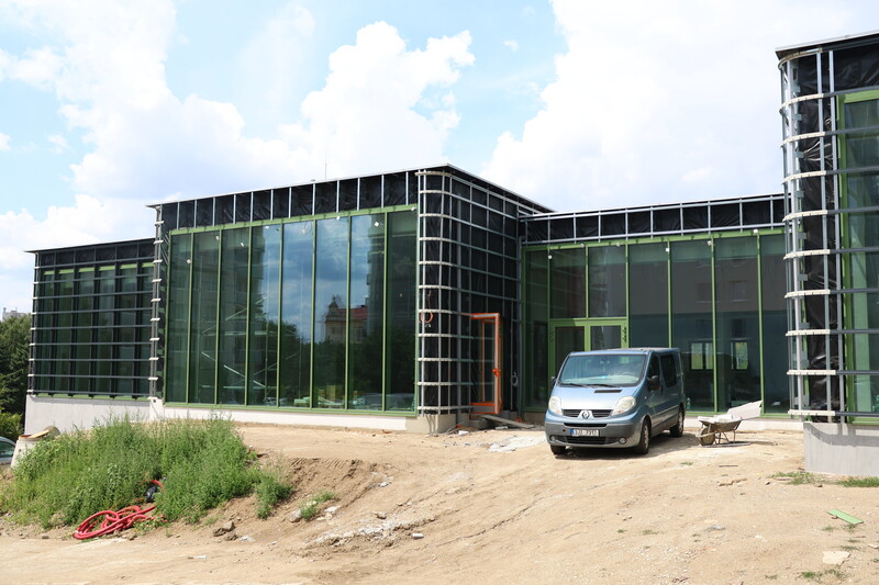 „Do montáže plechového opláštění by se firma měla pustit začátkem srpna,“ uvedl stavbyvedoucí konsorcia Gremis a Atika Lysý Vladimír Hort. Stavební práce zakončí venkovní úpravy, dlažby a exteriérové prvky.
