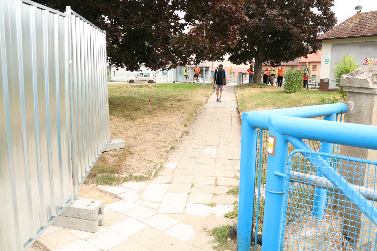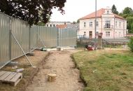 U Kotvičky jsou již vytyčené podzemní kontejnery na odpad, které vzniknou v místě parkoviště. I tady je vsakovací objekt hotový.