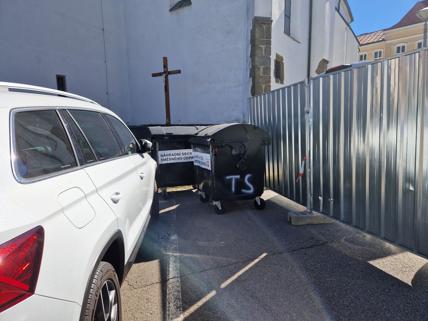Kontejnery na separovaný odpad, které až dosud stály u kostela a sloužily ulicím Kostelní a Komenského, jsou nyní za mostem v areálu Svit. Technické služby je přesunuly kvůli pokračující rekonstrukci v Komenského ulici. Stavba je nyní oplocená až ke vstupu do Svitu a u kostela nezbývá dost prostoru na větší počet kontejnerů, které by zbytečně zabíraly parkovací místa.