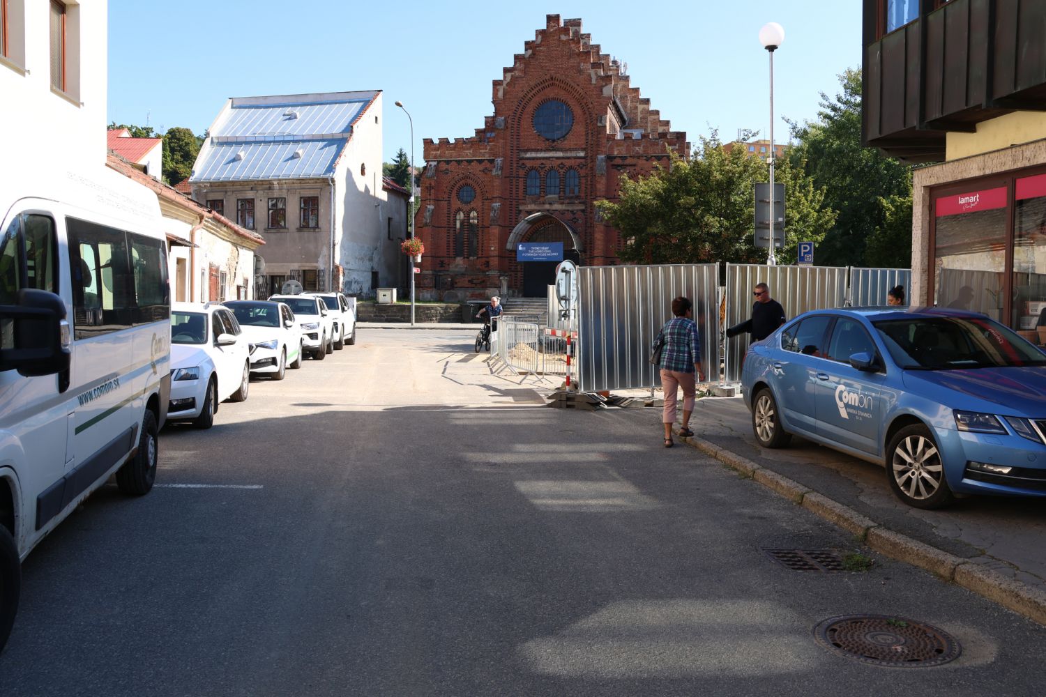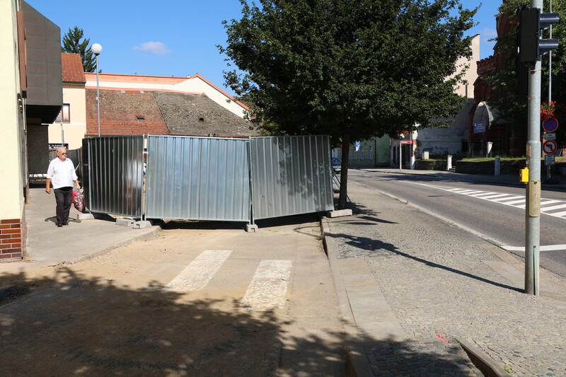 Stavba od zítřka uzavře chodník těsně kolem Kotvičky. Přístup do obchodu i směrem na náměstí ale zůstane zachován – lidé projdou hlavním chodníkem podél silnice. Kostelní ulice také zůstává s omezeními průchozí.