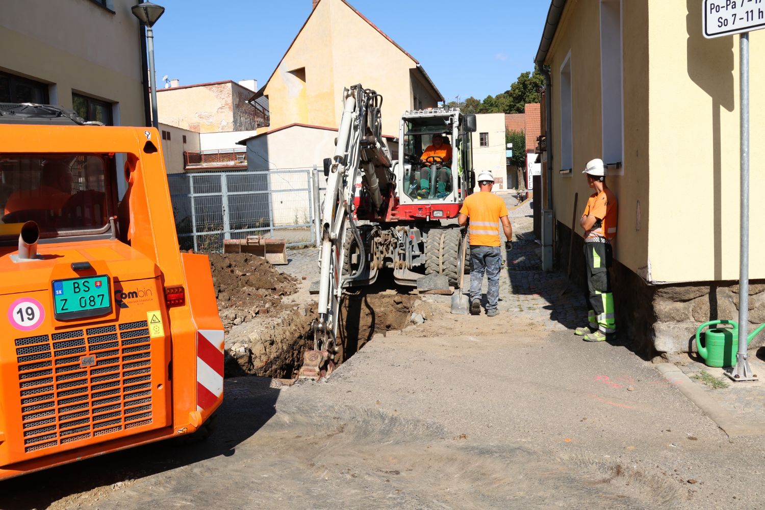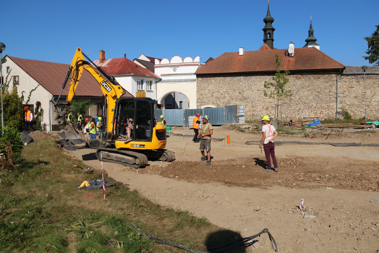Koncem týdne se pracovníci pustí do frézování chodníku podél budovy Kotvičky, aby ho připravili pro následnou pokládku dlažby. Přípravy na dláždění, stavbu nového betonového zábradlí i zvýšení zdi na soutoku pokračují také v prostoru Šebestiánského náměstíčka, kam už v příštím týdnu firma začne navážet obrubníky. Lávka z Ostrůvku je stále průchozí, a to přímo na Novosady. Dlaždiči by mohli s prací začít v říjnu, nejpozději do půli listopadu.