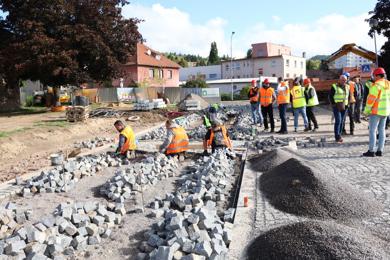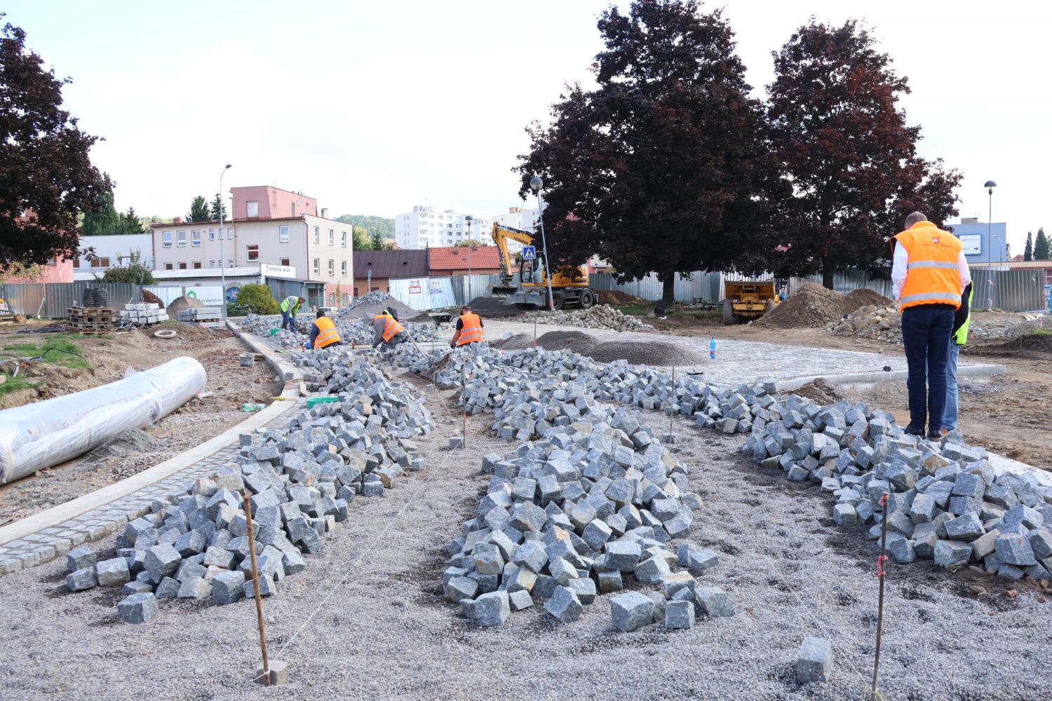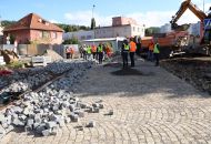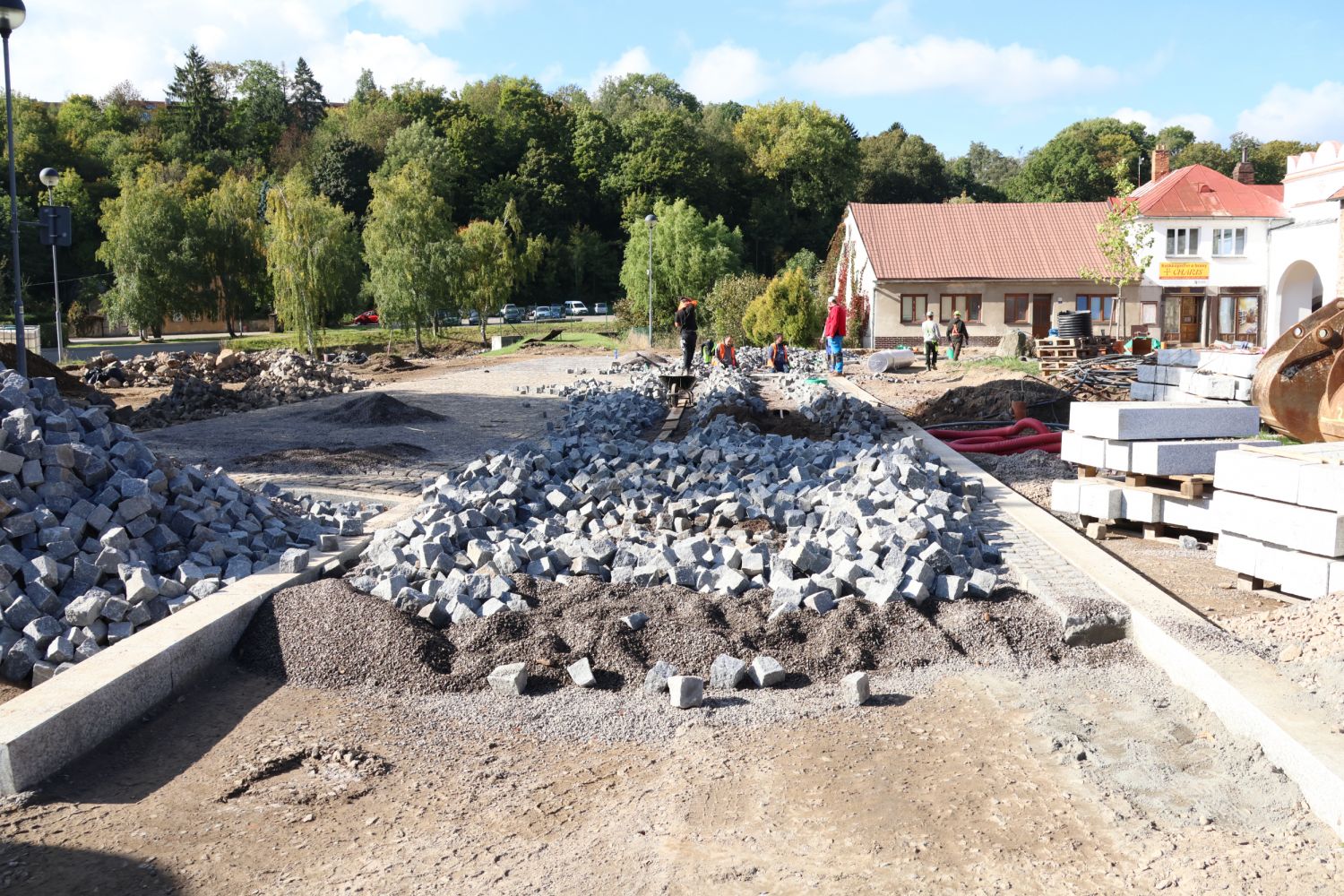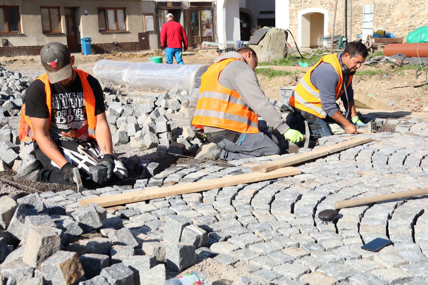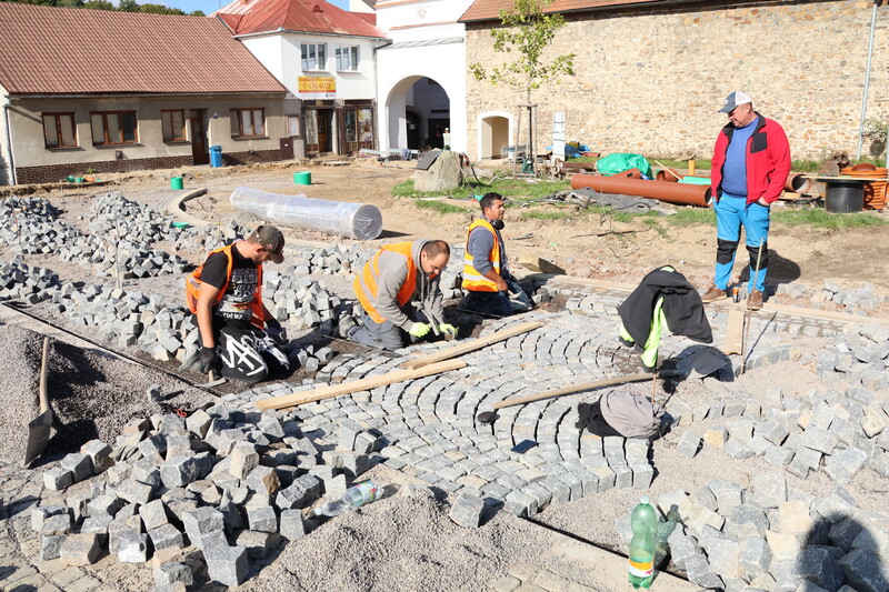 Dlaždiči se pustili do práce a výjezd z náměstí již dostává svoji konečnou podobu. Rekonstrukce pokračuje i v dalších ulicích.