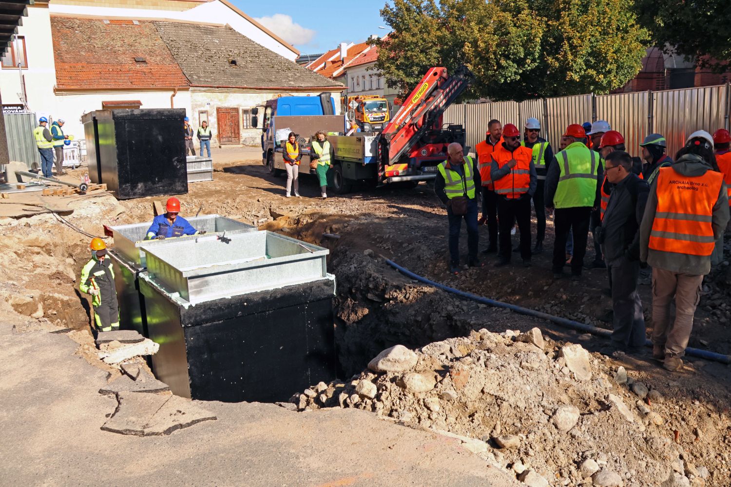 U Kotvičky jsou v zemi odpadní kontejnery a po jejich konečném usazení začne příprava na dláždění i tady. Stavba kanalizace pokračuje na Rozkoši i ve spodní části náměstí. V Kostelní zbývá vybetonovat monolitickou šachtu, což stavbaři plánují v tomto týdnu.