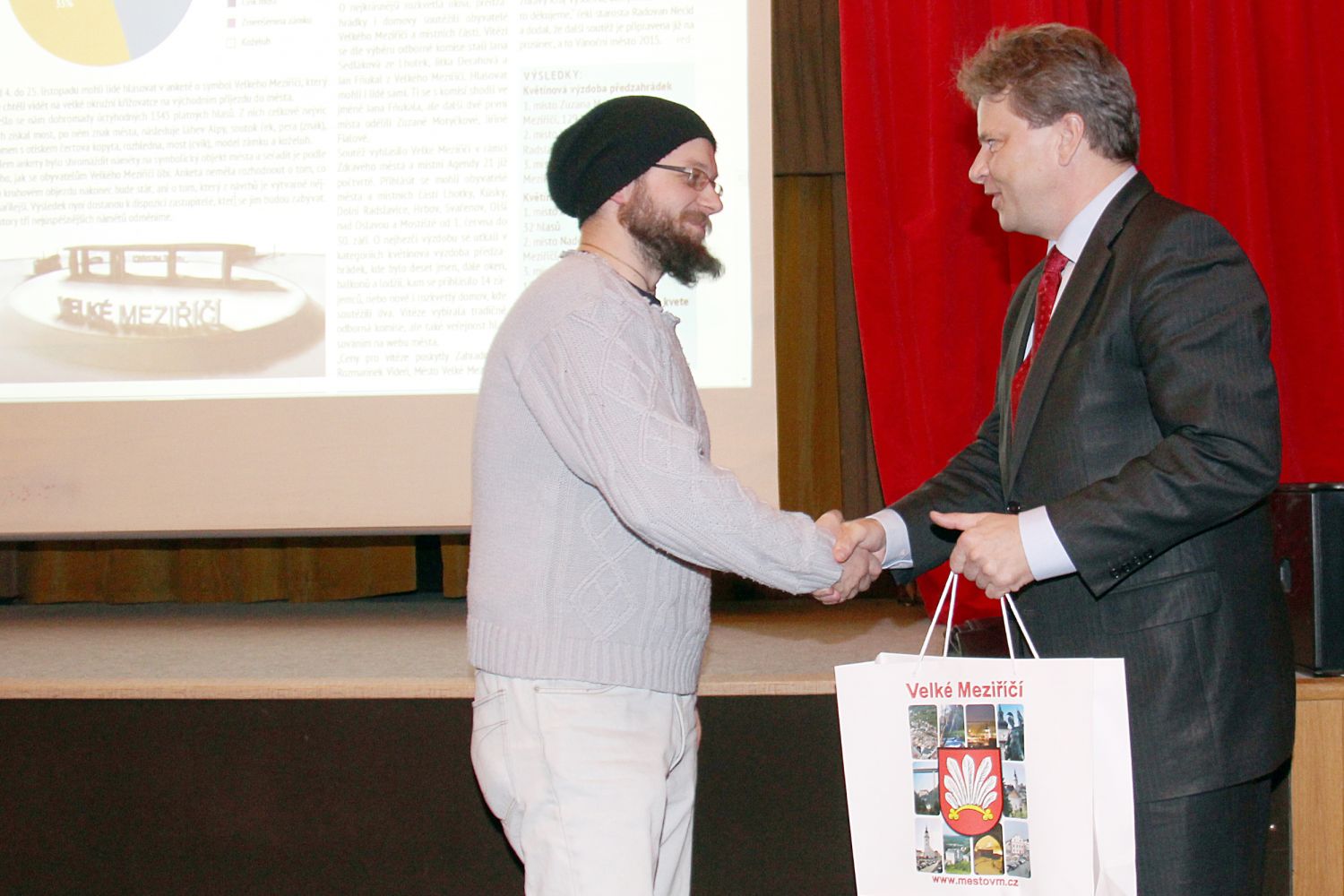 Výherci ankety Velkomeziříčska o námět na symbol města, který by se mohl vítat návštěvníky Velkého Meziříčí na nové okružní křižovatce u Dolních Radslavic, byli včera oceněni při setkání se starostou.