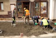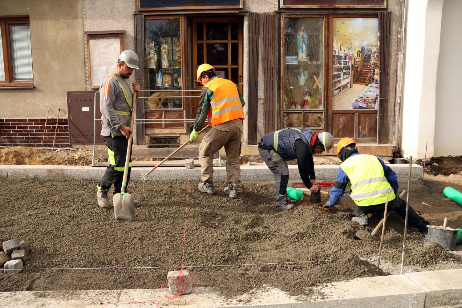 První představu o tom, jak bude po rekonstrukci vypadat centrum města, si už nyní mohou udělat návštěvníci Šebestiánského náměstíčka. Dlaždiči postupují s kladením žulových kostek směrem k bráně, kde v současné době usazují obrubníky.