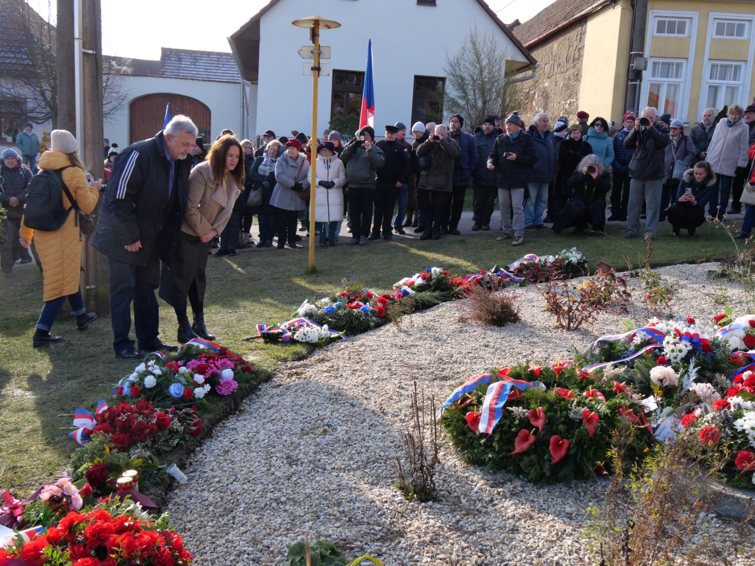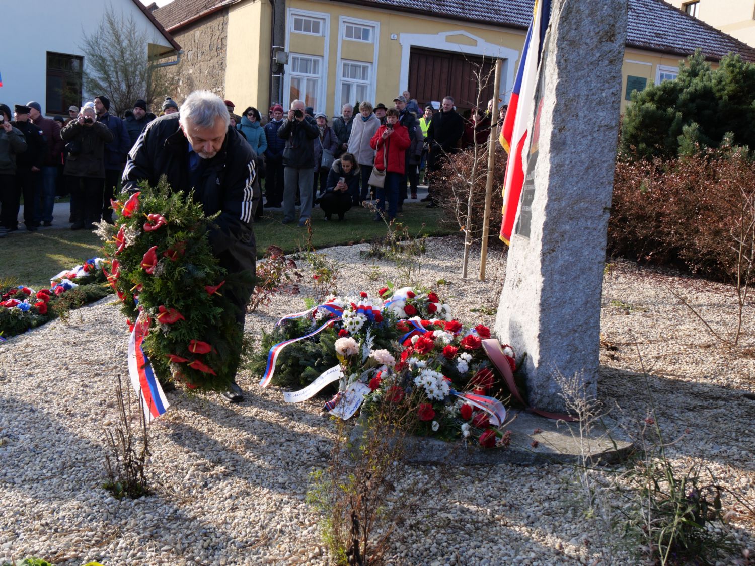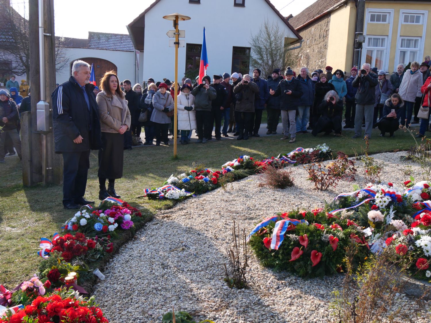 Věnec k pomníku položili nejen zástupci Společnosti Ludvíka Svobody a zástupci obce Hroznatín v čele se starostkou Janou Uchytilovou, ale také hejtman Kraje Vysočina Martin Kukla a zástupci města Velké Meziříčí radní Andrea Vašíčková a Petr Juda.