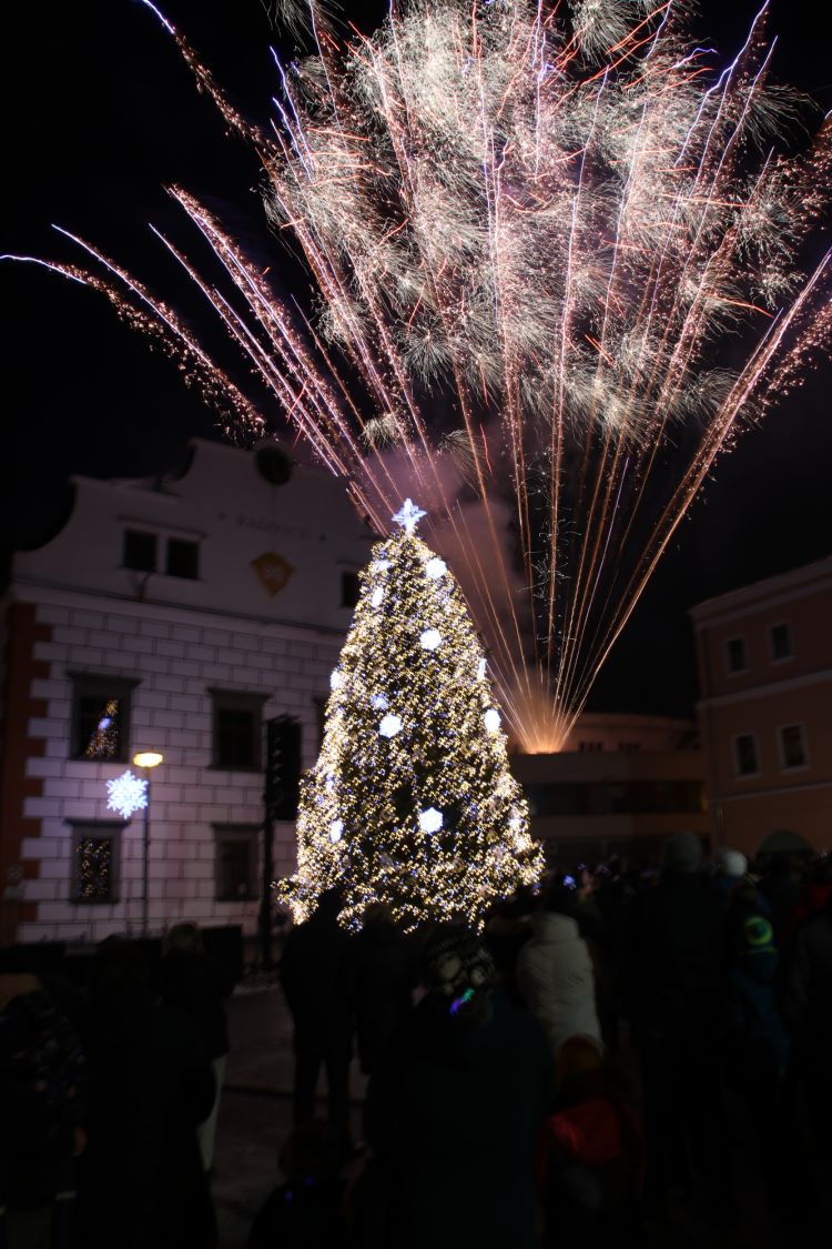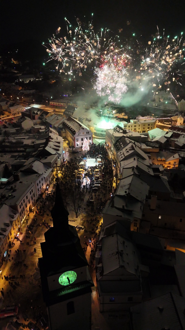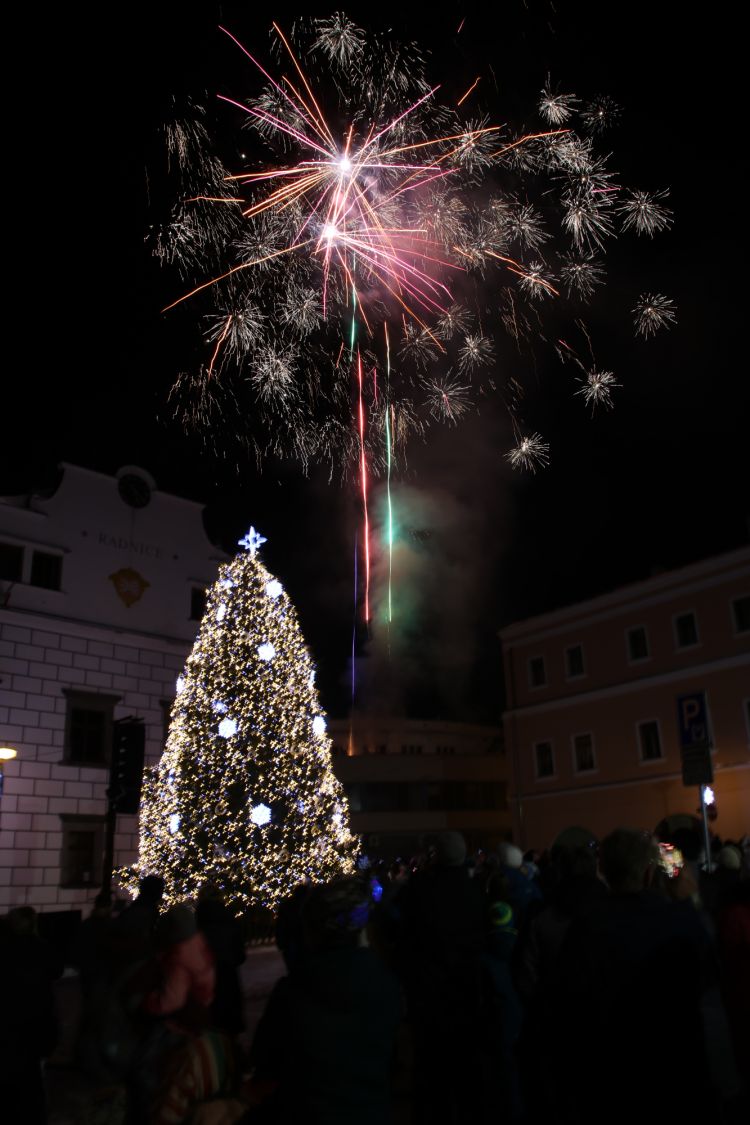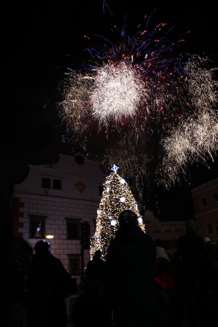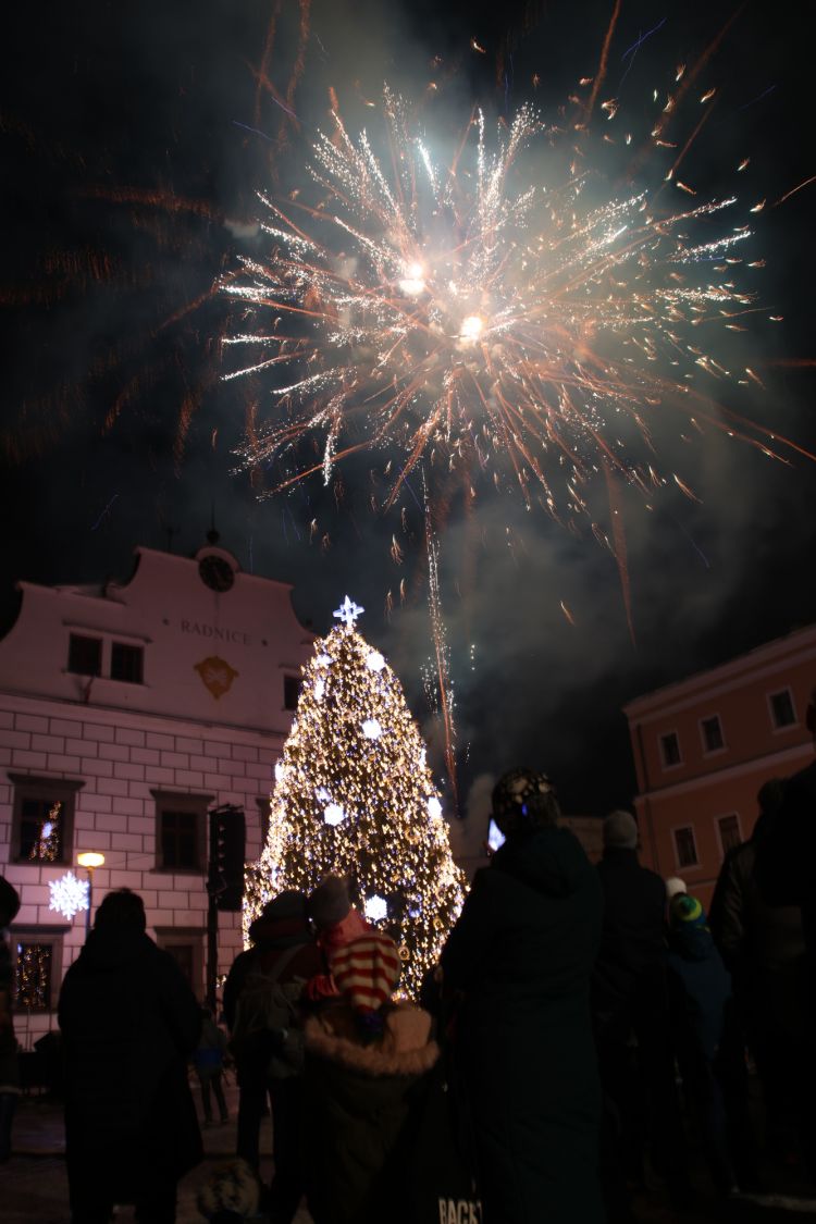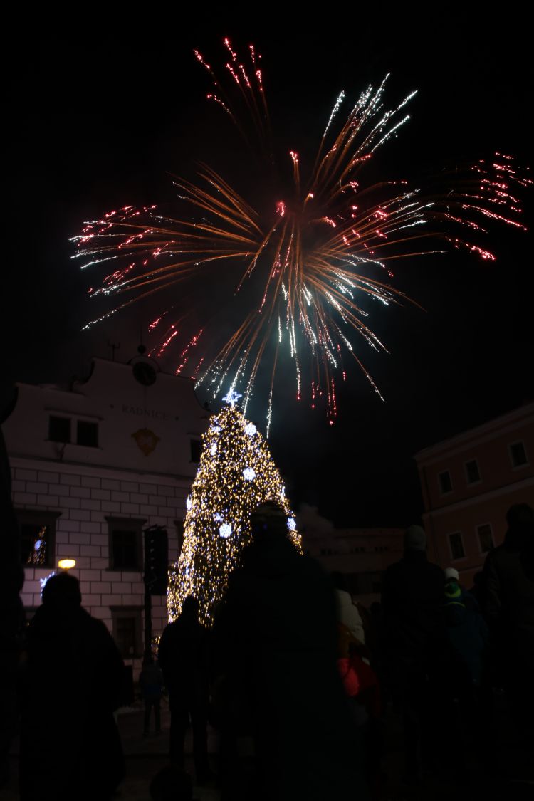 Šťastný nový rok! znělo náměstím, kde se sešli lidé k novoročnímu ohňostroji. Ten byl letos odpálen z budovy bývalé lékárny.