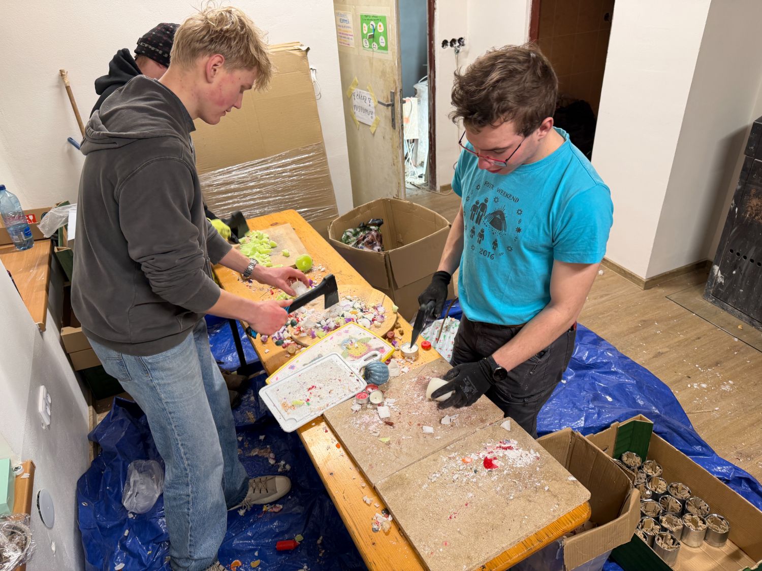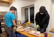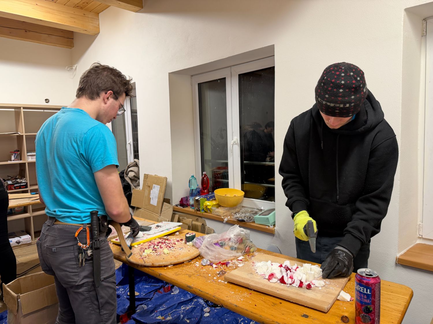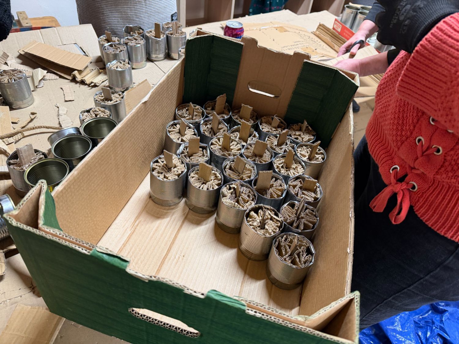 Během večera se sešlo asi 20 účastníků, kteří pracovali na výrobě svíček putujících lidem zasaženým válkou na Ukrajině. Dobrovolníci stříhali a skládali kartonové vložky, připravovali vosk, upravovali plechovky a následně je plnili kartonem a roztaveným voskem.
